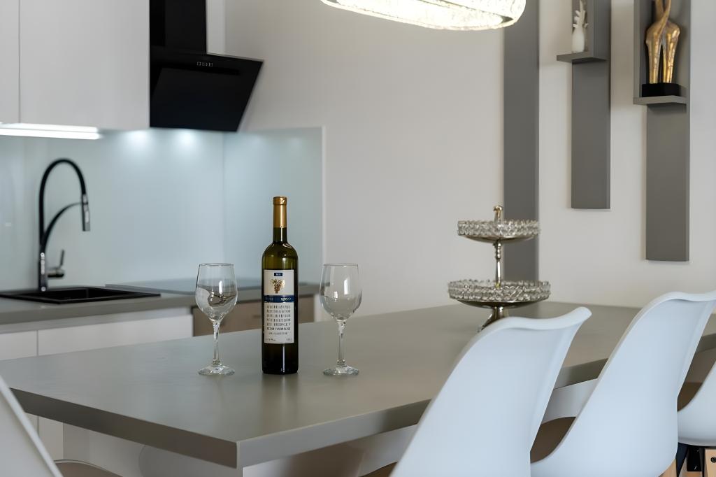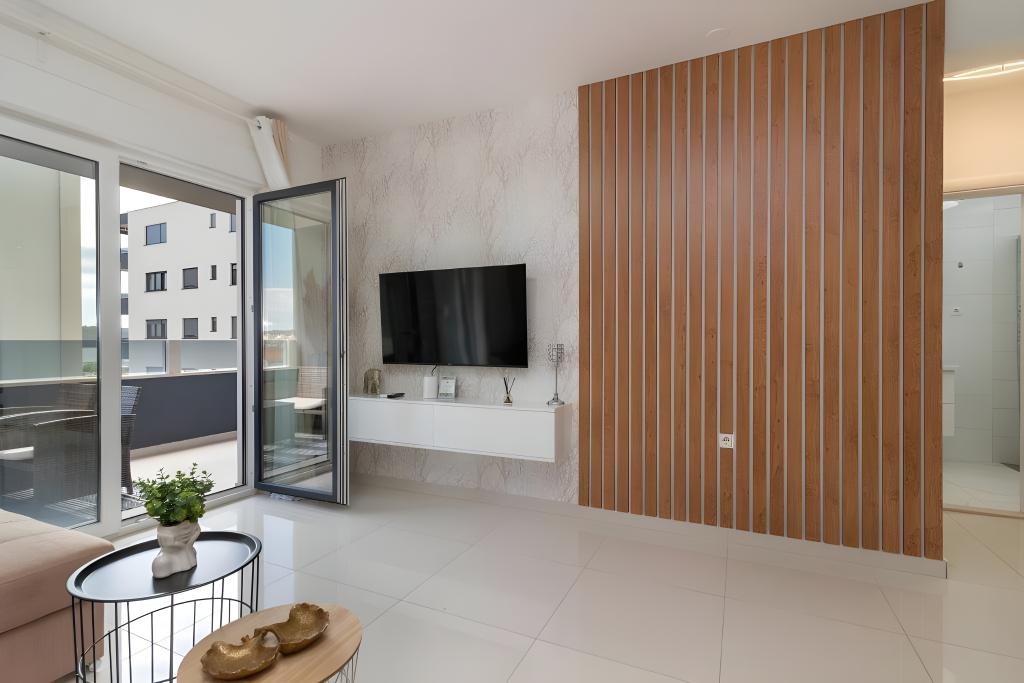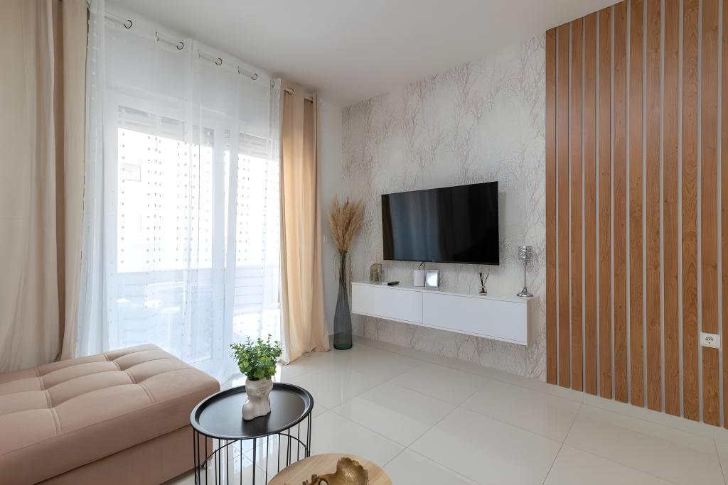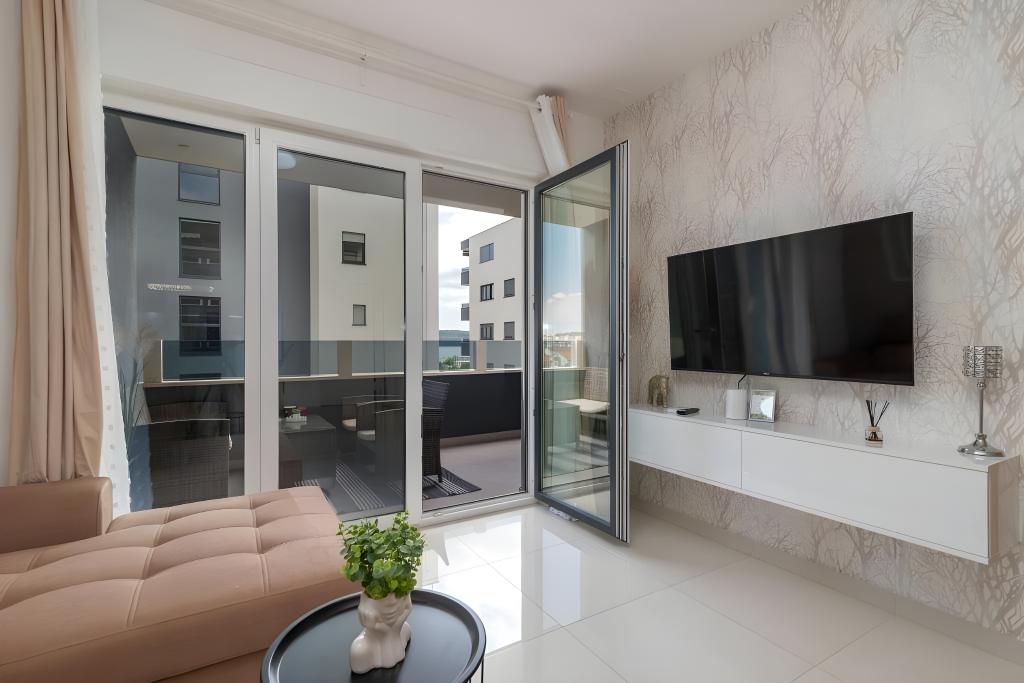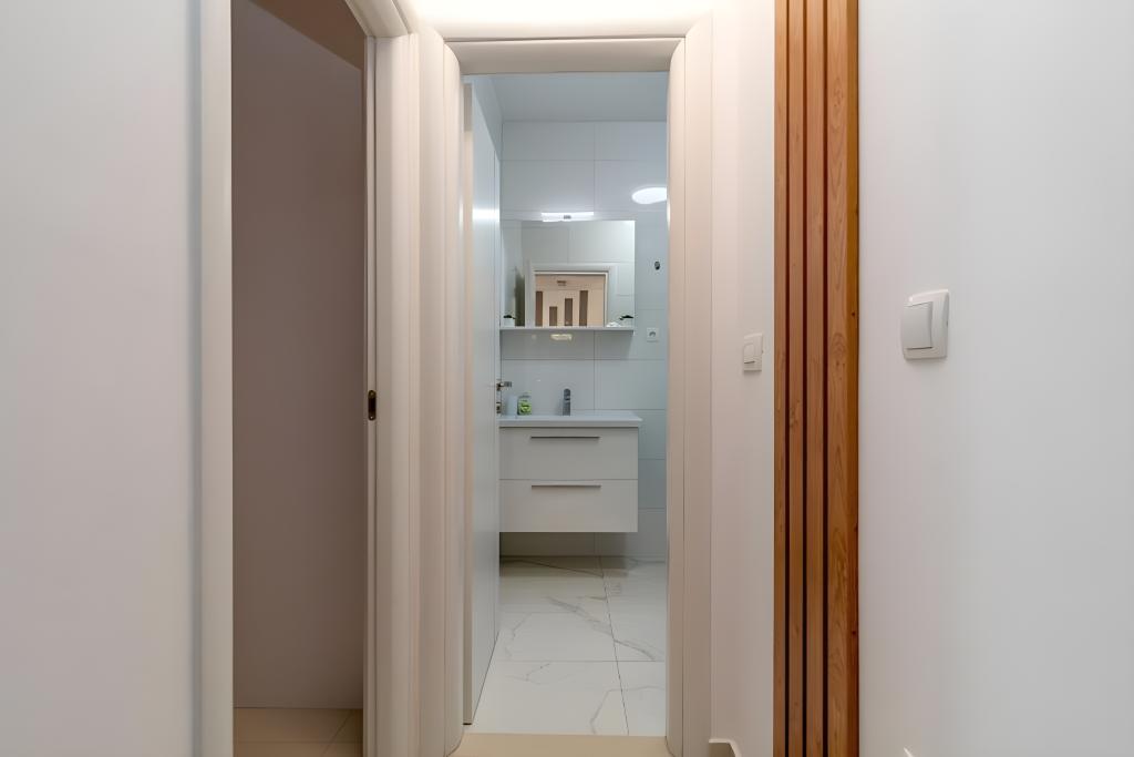 Namestitev se nahaja v moderni novi stavbi v mirnem in urejenem okolju, idealnem za sproščen in brezskrben oddih. Objekt gostom ponuja zunanji bazen v stavbi, ki je kot nalašč za uživanje v toplih dneh, in brezplačno parkiranje. Apartma je sestavljen iz spalnice z udobno zakonsko posteljo, dnevne sobe z raztegljivim kavčem, popolnoma opremljene kuhinje, kopalnice in balkona. Prostor je moderno opremljen s poudarkom na udobju in funkcionalnosti, kar ustvarja prijetno in sproščujoče vzdušje. Balkon še dodatno obogati prostor in ponuja idealen kraj za jutranjo kavo ali večerno sprostitev. Lokacija zagotavlja zasebnost in mir, hkrati pa omogoča enostaven dostop do vseh pomembnih ugodnosti v okolici, zaradi česar je ta namestitev idealna kombinacija sprostitve in praktičnosti.