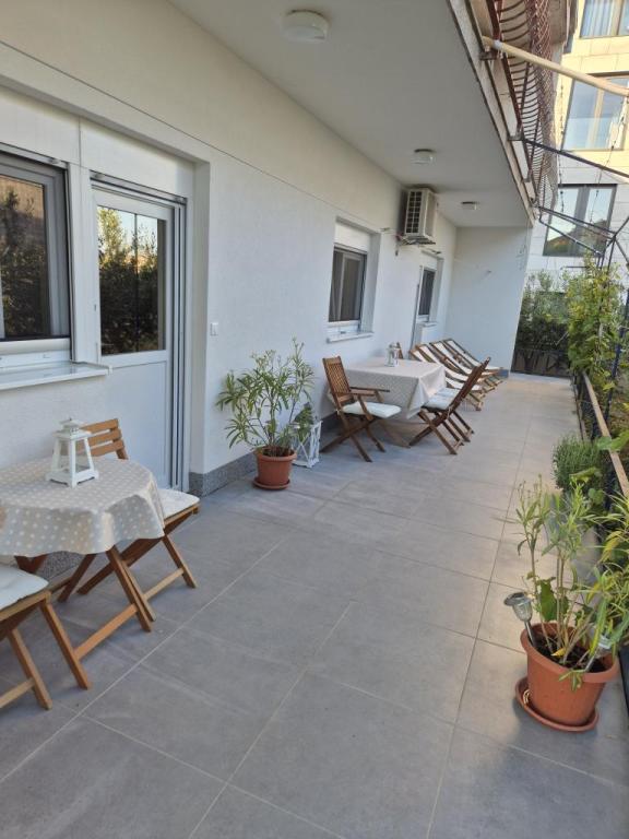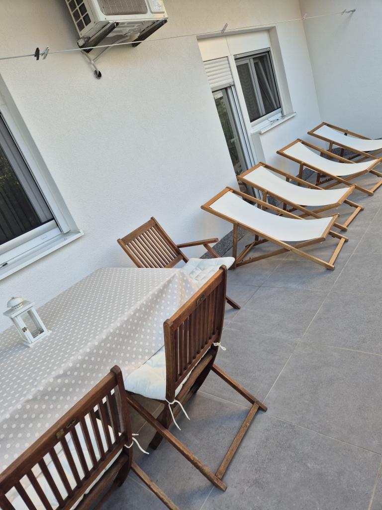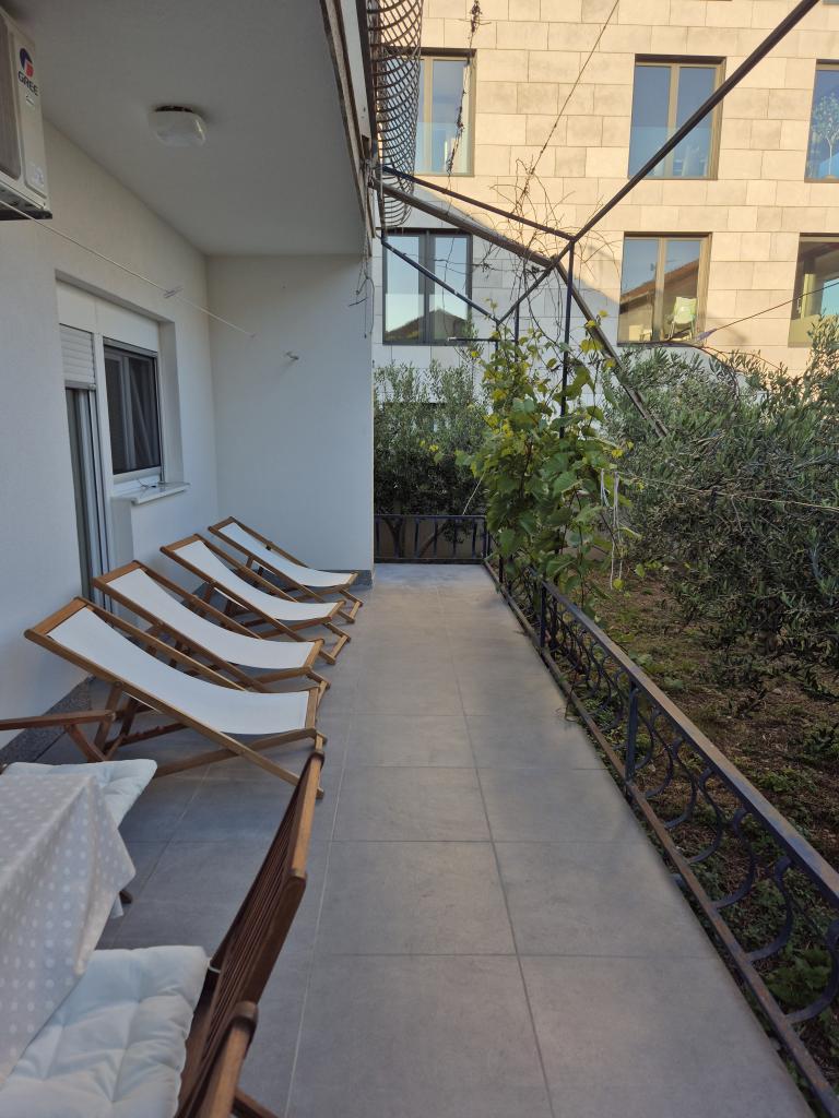 Apartma za 6 oseb z veliko teraso, druga vrsta do morja. Mesto Trogir je oddaljeno 8 minut hoje od apartmaja, prva plaža pa je 5 minut hoje od apartmaja. Restavracije, bari in trgovine v neposredni bližini.