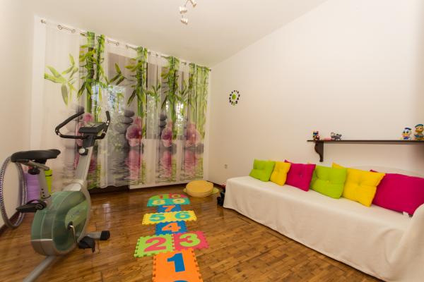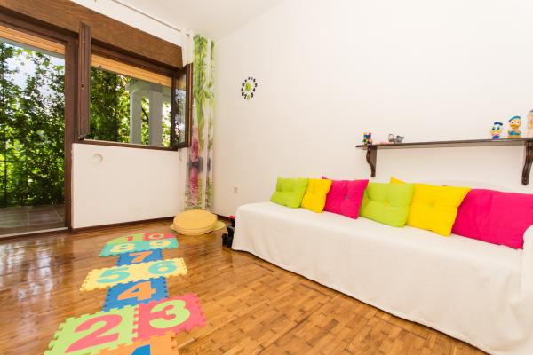 Turistična taksa je vključena v ceno.Apartma Lorenzo ima veliko in osenčeno teraso (34m2), vrt (800m2), ploščice (70m2), 3 spalnice (1. soba = zakonska postelja, pogled na Trogir simbol: katedrala Sv. Janeza, 2. soba = zakonska postelja postelja za eno osebo, izhod iz terase, tretja soba = zakonska postelja, pogled na zelenje in vrt), dolg hodnik okrašen s starimi Trogirjevimi slikami, kopalnica (kad, popolnoma nov pralni stroj, sušilec za lase, brezplačne toaletne potrebščine, nova kopalnica (bide, umivalnik, WC školjka), dodatna rekreacijska soba (kolo za otroke, otroški prostori, delovna miza), prostorna dnevna soba (satelitska televizija, linija, klima ...) pomivalnim strojem, garažo in samostojno žarnico