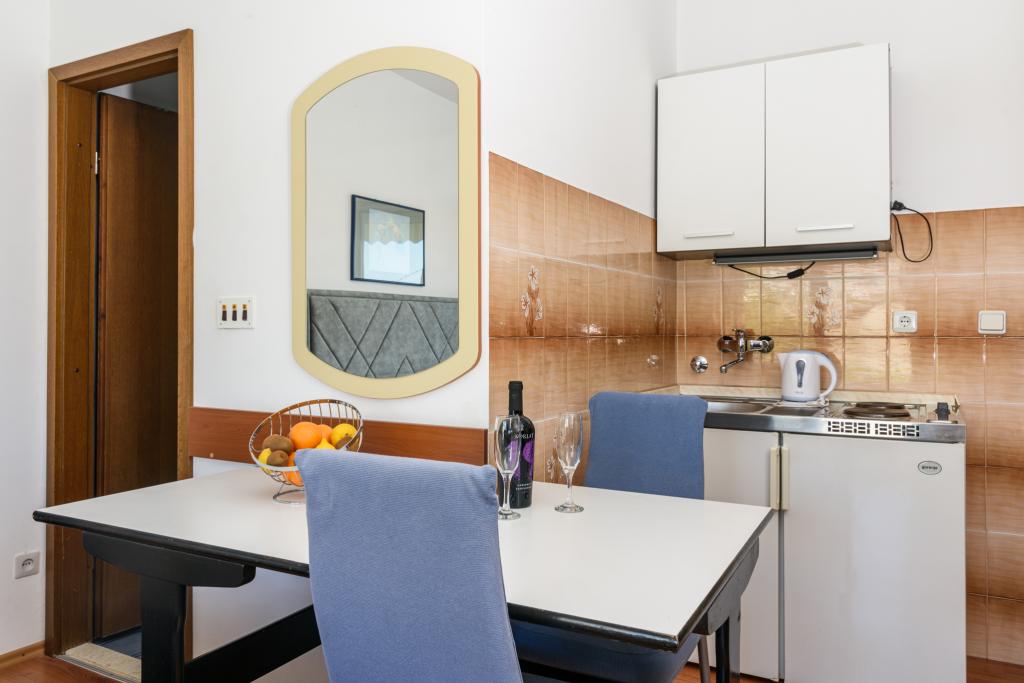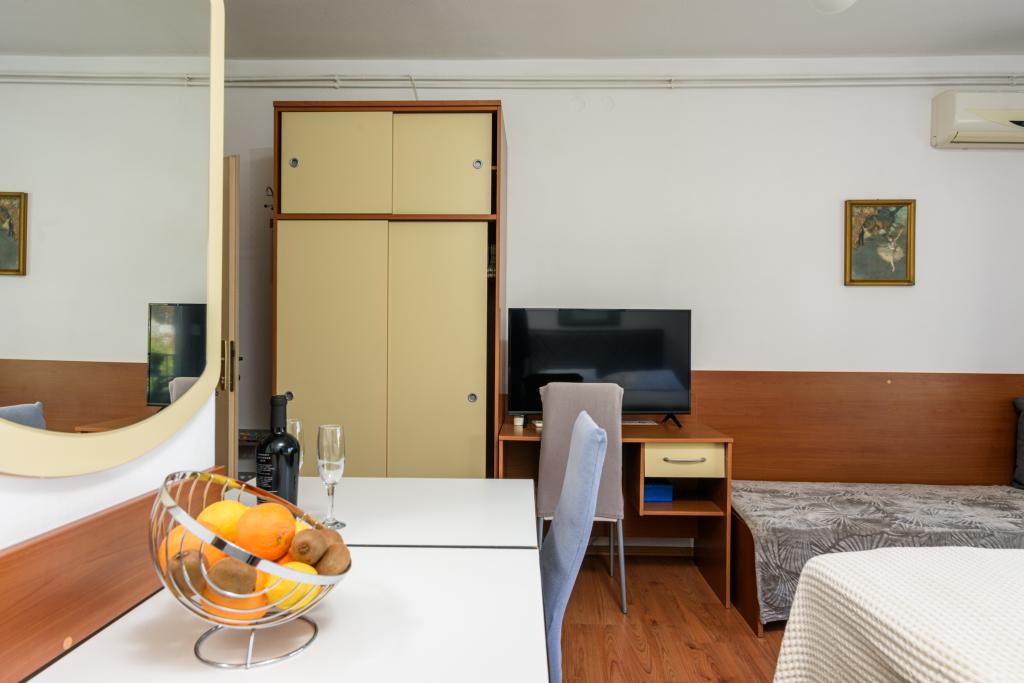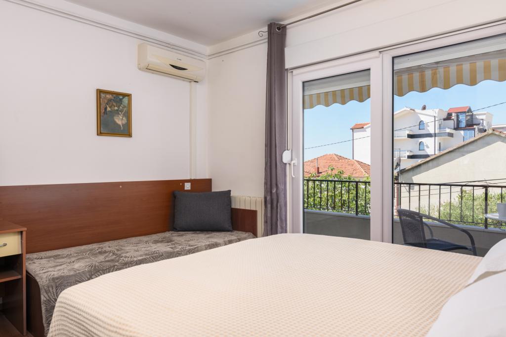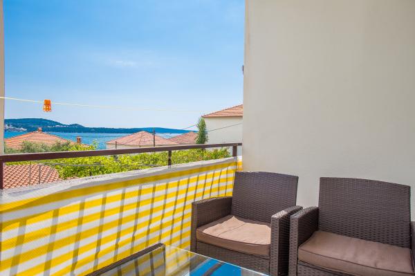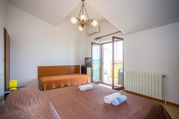 Villa Ivanka se nahaja 50 m od morja. Ima 11 apartmajev, vsi s pogledom na morje, za 2, 3, 4 ali 5 oseb. Vsi apartmaji so dobro opremljeni (klima, SAT / TV, centralno ogrevanje), z balkonom ali teraso. Gostje lahko uporabljajo žar, ki se nahaja na veliki skupni terasi. Villa Ivanka se boste počutili zelo udobno in uživali dopust v oazi lepote, čisto morje in kakovostno nastanitev v mediteranskem okolju. PRITLIČJE: Prvi apartma 3 2, 45m2 terasa 8m2, pogled na morje: 1 spalnica z zakonsko posteljo in enim ležiščem - Kavč za 2 osebi v dnevni sobi - Klima 2. apartma 2 2, 45m2 terasa 8m2, pogled na morje - 1 spalnica z zakonsko posteljo - Nočitev za 2 osebi v dnevni sobi - Klima NADSTROPJE: 3. apartma 2 2, 45m2 terasa 8m2, pogled na morje - 1 spalnica z zakonsko posteljo - Nočitev za 2 osebi v dnevni sobi - Klima 4. apartma 3 2, 45m2 terasa 8m2, pogled na morje (dve spalnici) - 1 spalnica z zakonsko posteljo posteljo za 1 osebo - Spalnica z zakonsko posteljo - Klima Sedmi studio 2,18m2 - Zakonska postelja 8. apartma 2 1, 24m2 terasa 4,5 m2, pogled na morje 1 spalnica z zakonsko posteljo - Klima 9. apartma 3 2, 45m2 terasa 16m2, pogled na morje - 1 spalnica z zakonsko posteljo posteljo za 1 osebo - 1 spalnica z zakonsko posteljo - Klima 10. stu