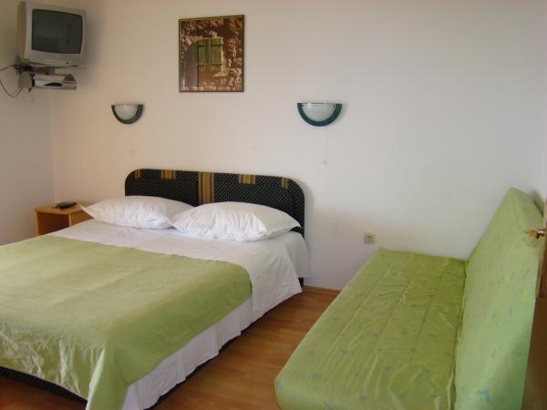 Turistična taksa nije vključena v ceno.Trogir, mesto, ki jedro mesta urban je ena izmed najbolj ohranjenih spomenikov v srednjem veku na vzhodni obali Jadrana, je bila ustanovljena v 4. B.C. stoletje kot grški Tragurium kolonije. To malo mesto v prvem stoletju postala del rimskega imperija in postane trgovina in upravno središče rimske province Dalmacije. Mesto, ki se nahaja na majhnem otoku, s kopnim povezan z mostičkom, na eni strani, in na otoku Čiovo, na drugi strani, cvetel v srednjem veku. To obdobje predstavlja vpogled v gospodarstva, trgovine, kulture in umetnosti Trogirja. Takrat je bilo obdobje velikih objektov, izvajanje obrambnega sistema stenske in utrdb, ki povsem obdaja mesto.