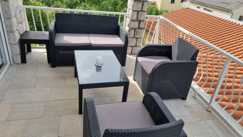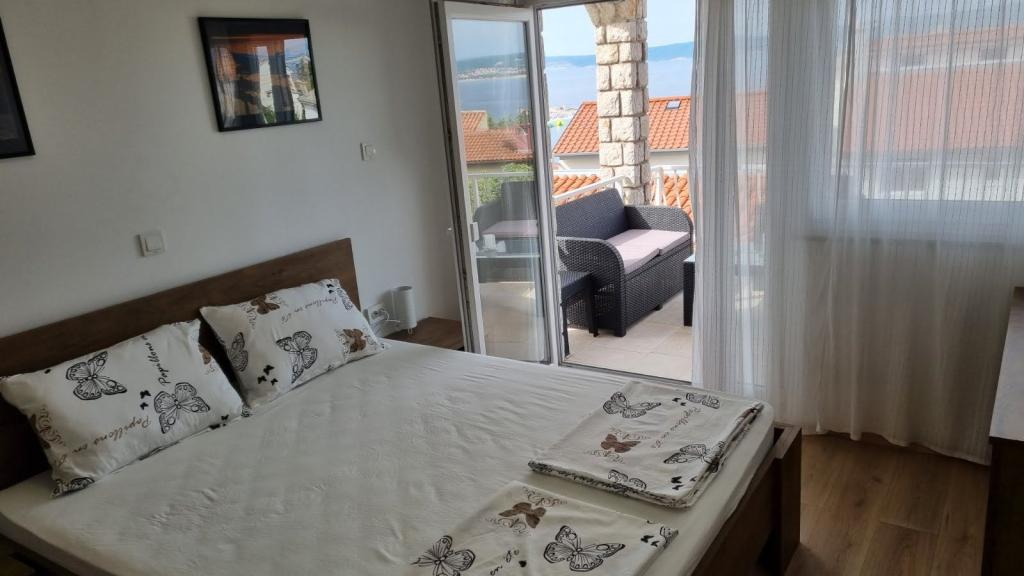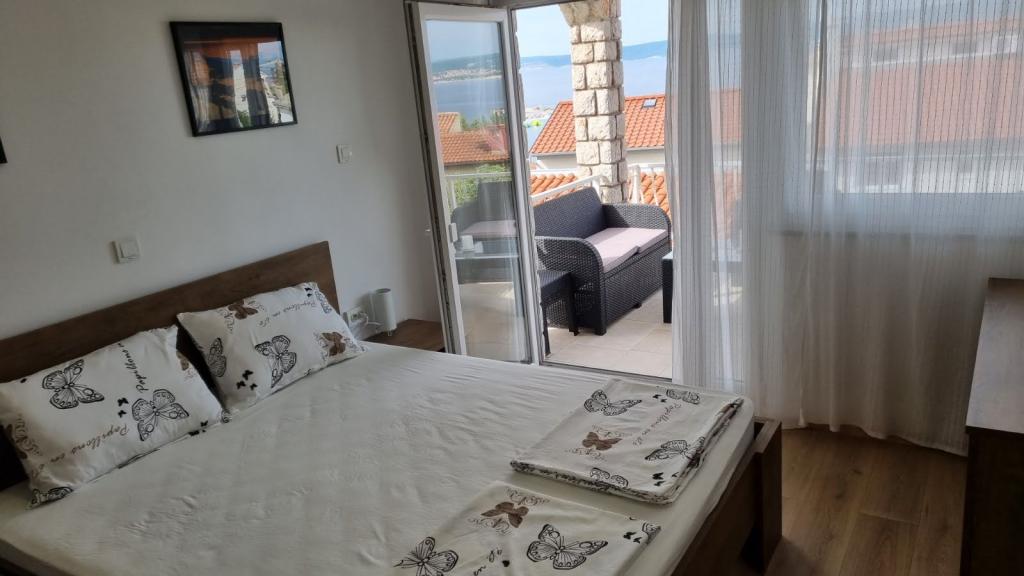 Oddam dvosobno stanovanje z veliko teraso in pogledom na morje. Stanovanje se nahaja v mirni ulici, 200 metrov od morja, plaže in centra Selc.