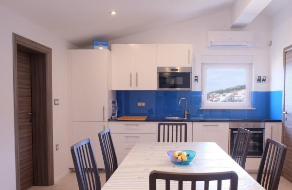 Popolnoma in moderno opremljeni apartmaji v mirnem predelu Selca, s čudovitim razgledom na otok Krk in Kvarner. Objekt se nahaja 3 minute od centra, ki ponuja različne ugodnosti: banka, pošta, lekarna, trgovine, bari, restavracije... Objekt ima veliko dvorišče in parkirišče. Hišni ljubljenčki so dobrodošli. MODRI apartma se nahaja v mansardi in ponuja vse ugodnosti opremljenega apartmaja. Na voljo so kuhinjski aparati (hladilnik, zamrzovalnik, pomivalni stroj, pečica, mikrovalovna pečica...). Na balkonu je vrtno pohištvo in 2 ležalnika. RDEČI apartma se nahaja v drugem nadstropju in ponuja vso opremo, da bo vaš dopust prijeten. Na voljo so kuhinjski aparati (hladilnik, zamrzovalnik, pomivalni stroj, mikrovalovna pečica...). Na balkonu je vrtno pohištvo in 2 ležalnika. SIVI apartma se nahaja v drugem nadstropju, ima majhno kuhinjo s kuhinjskimi aparati za udobno bivanje (hladilnik, zamrzovalnik, pomivalni stroj, mikrovalovna pečica...) in eno sobo. Na balkonu je vrtno pohištvo in 2 ležalnika.