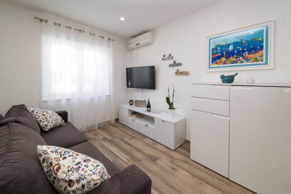 Julija 2023 smo tukaj preživeli čudovite počitnice. Lastniki so zelo prijazni in ustrežljivi. Lastnik nam je razkazal naše stanovanje in vse razložil. Lastnik nam je že zjutraj dovolil parkirati avto pred apartmajem. Odlična komunikacija z lastniki. Cela hiša je lepa, urejena, vzdrževana, dvorišče polno rož, povsod zelo čisto. Imeli smo popolno zasebnost, mir. Stanovanje je popolnoma novo, moderno in lepo opremljeno, zelo čisto in dovolj prostorno. Dve klimatski napravi, pralni in pomivalni stroj so bili odlični. Uporabljali smo tudi likalnik in pribor za prvo pomoč. Kuhinja je dobro opremljena, nič ni manjkalo. Pet ljudi se je tam počutilo odlično. Uporabljali smo balkon s pogledom na Selce, terasa je odlična za sušenje mokrih stvari s plaže. Apartma ima celo dodatno sobo za gumenjake, plavalno opremo, skiroje. Stanovanje je super. Cenimo čudovito bližino centra, trgovine, tržnice s sadjem in zelenjavo, vse v 2 minutah hoje. Plaža Poli Mora v 5 minutah hoje. Čistilka je zelo prijazna do nas in otrok, srčna. Že imamo rezervacijo za poletje 2024. Veselimo se in priporočamo to čudovito namestitev.