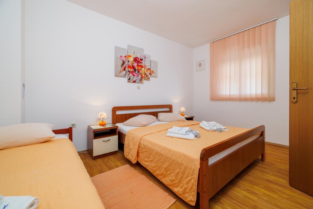Udobne sobe, del sobe je kopalnica, balkon, hladilnik. Nahaja se v zelo mirnem delu mesta, le 5 minut od plaže. To je klimatiziran in parkirišče za vozila. Vrt ima žar in miza s stoli, tako da je mogoče in kosilo. Mario in njegova družina so zelo storitev in so vedno tam odgovorili na vaša vprašanja. Hvala za vašo kratko, a lepi sobi. Tina in Tom