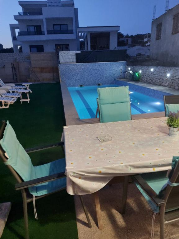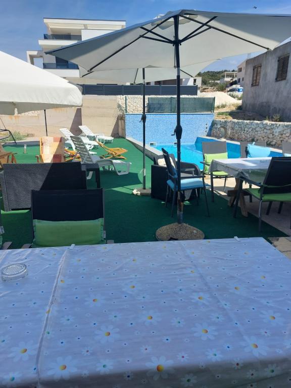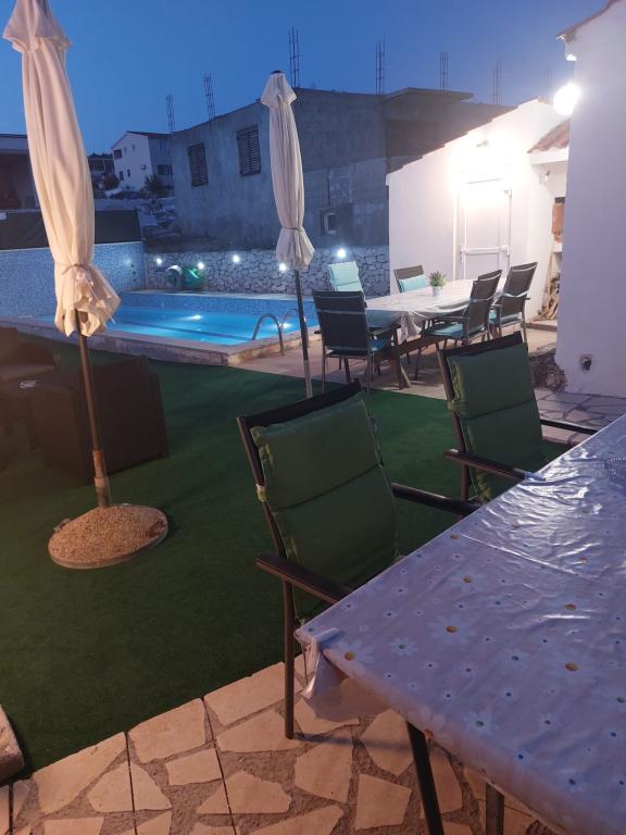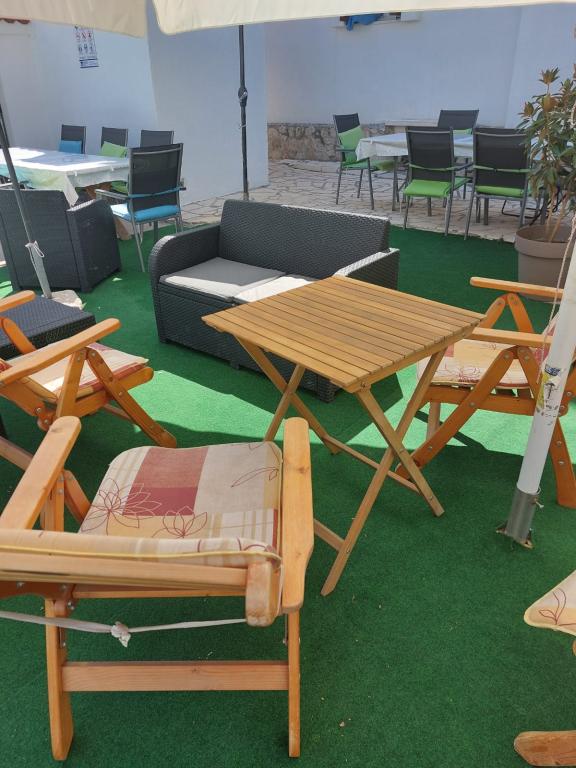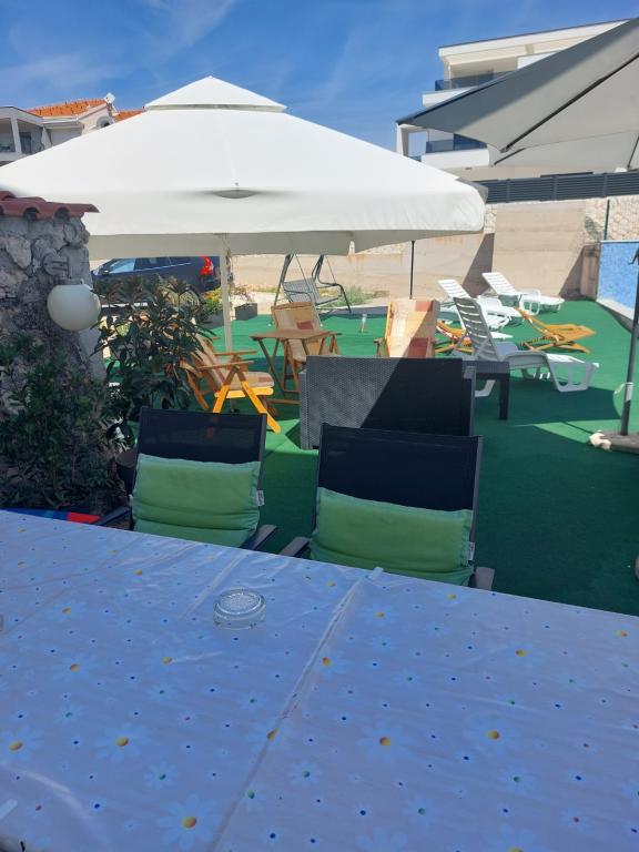 Tiho in mirno sosesko. Sončniki, dežniki, kajaki so na voljo na plaži in vse to po ceni. Na vrtu je bazen in žar. Parkirni prostor. Prostori A4 so prostorni z velikim balkonom (tam smo preživeli prvi teden), A2 + 2 (drugi teden bivanja) nekoliko manjše, čiste sobe. Lastniki prijazni, prijazni, koristni. Lepa družina 2 + 2 (otroci, stari 7 in 11 let). Do trgovine in bar 2 min. (samo trgovina in bar v vasi. Do plaže največ 1 minuto. Voda na tem mestu je zelo čista. Stanovanju Dinko priporočam vsem.