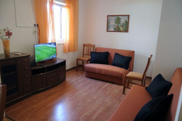V bližini našega stanovanja se nahajata dva parka, eden od njih ima dva razgledna in trim stezo in je kot nalašč za tiste, ki imajo radi sprehod. Nahajamo se 5 minut vožnje od centra mesta in najbližje mestne plaže Banj. Druge plaže so oddaljene 10 minut vožnje, vse plaže pa so prodnate in prijetne. Narodni park Krka je oddaljen le 20 min vožnje, narodni park Kornati pa 5 min vožnje. V naši neposredni bližini (50 m.) je trgovina Lidl, 150 m pa trgovina Konzum in Djelo. Za tiste, ki jim je všeč \\\\\\\\\ Igra prestolov \\\\\\\\, moramo poudariti, da so serijo snemali na trdnjavi, ki je od našega stanovanja oddaljena 10 minut hoje. Nudimo miren apartma z veliko sence, v bližini vrta, s katerega lahko uživate v zdravem ekološkem sadju sezonske zelenjave. Apartma ima tudi dve stranišči in ločeno (od stranišča) kopalnico s prostorno prho. Vključena kuhinja. Parkirišče je zagotovljeno v našem