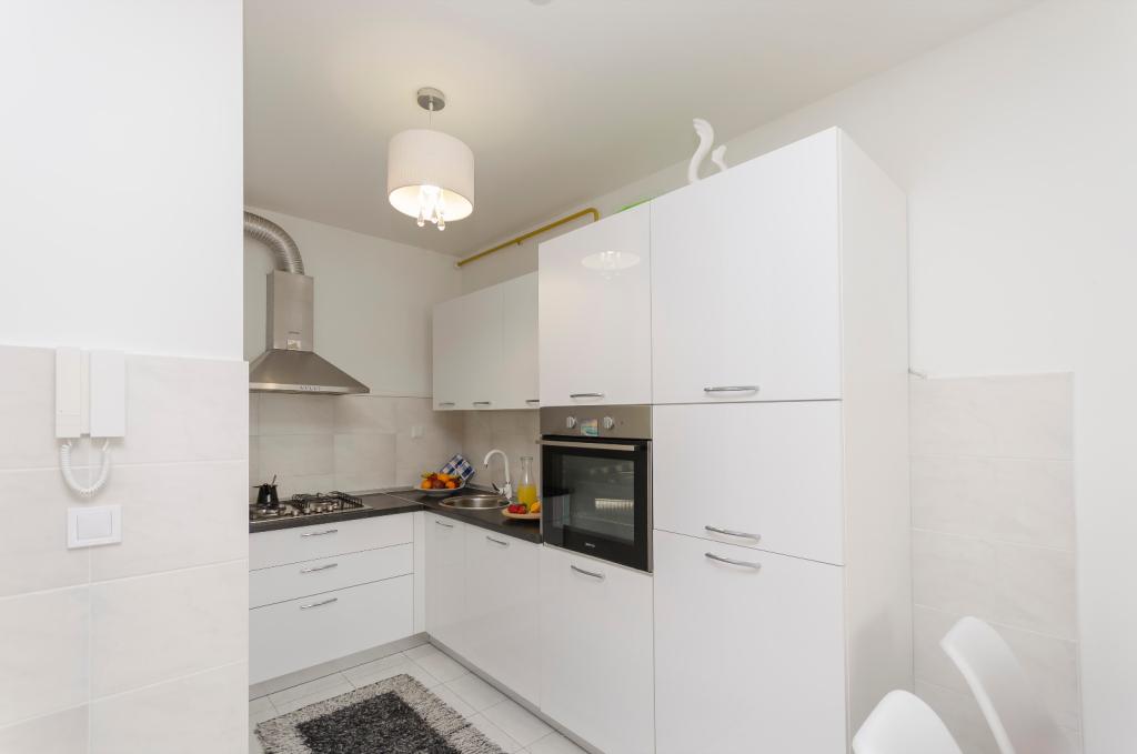 Popolnoma in moderno opremljeno stanovanje v mirnem delu mesta, sestavljeno iz dveh spalnic, kuhinje z jedilnico, dnevne sobe, kopalnice in terase ter garaže za avto. Nahaja se 15 minut hoje od starega mestnega jedra. Le 1 km od trdnjave Barone, 1,1 km od katedrale sv. Ivana in 900 metrov od trdnjave sv. Michael. Apartma je od mestne plaže Banj oddaljen 1 km. Najbližja restavracija je oddaljena 500 m, najbližja trgovina pa le 100 m. Narodni park Krka je oddaljen 8 km, Narodni park Kornati pa 40 km.