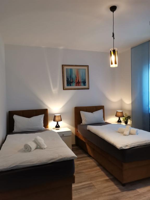 Počitnice z družino in prijatelji brez stresa in hrupa v mirnem okolju. Oddaljenost 1,8 km od čudovite plaže "Rezalište" z brezplačnim parkiriščem in bogato vsebino, 4 km od centra mesta, 10 km od NP Krka, in vse kar potrebujete, trgovine, restavracije, hitra prehrana, lekarna, nogometno in košarkarsko igrišče z vadbo oprema, vse v krogu 0,4 km Cena vključuje parkiranje do 3 vozil na dvorišču, ter turistično takso.