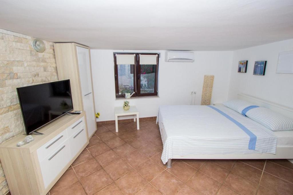 Hiša se nahaja v Jadriji, v mirnem vikend naselju v bližini Šibenika, obdanem s čistim morjem in s pogledom na dva čudovita otoka Zlarin in Prvić, idealen kraj za sproščujoče družinske počitnice stran od množice. Poleti je Jadrija s Šibenikom povezana z ladjo preko kanala sv. Antuna, kar vam omogoča prijeten in edinstven izlet v mesto, ne da bi vas skrbelo parkiranje. Hiša se nahaja le 300 m od morja in urejene plaže, ki je oddaljena le 5 minut hoje po ravni in prijetnih ravne poti. Na voljo so trije popolnoma opremljeni apartmaji, vsak s klimatsko napravo, brezžičnim internetom in satelitsko televizijo. Dva apartmaja v prvem nadstropju imata balkon z delnim pogledom na morje, kar je idealno za jutranjo kavo ali večerno sprostitev. Apartma v pritličju (opomba: višina stropa 2 metra) ima dostop do prostornega mediteranskega vrta z žarom in zunanjim tušem, zaradi česar je idealen za bivanje na prostem in poletna druženja. Parkiranje za vse tri apartmaje je zagotovljeno pred hišo. . mirna lokacija . blizu plaže . zasebno parkirišče . idealno za družine