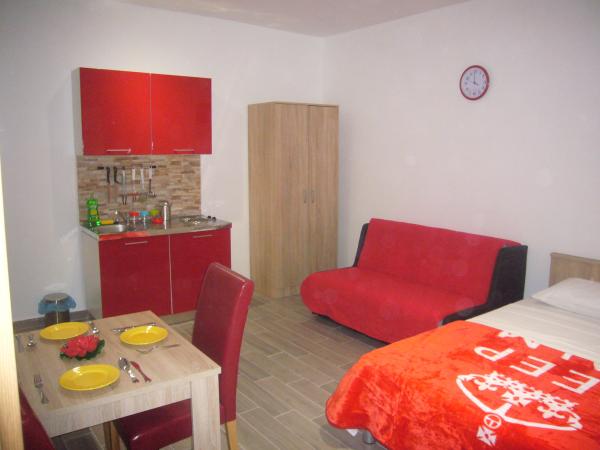 Kot so na novo obnovljeni apartmaji se nahajajo v starem delu mesta, v mirni soseski. V bližini so trdnjava Barone in St. Michael. Do centra mesta je 5 minut hoje. Do bližnje plaže Banj v 10 minutah. Apartmaji imajo teraso s pogledom na morje. Z avtomobilom se lahko pripeljete v neposredni bližini apartmaja in parkiranje ni na voljo. Obstaja javni Parkirišče, ki se obračuna, in je 7 minut hoje.