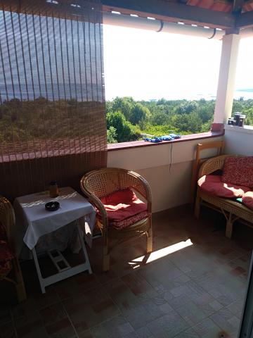 Apartma se nahaja v hiši z več apartmaji, ima ločen vhod v stanovanje, ki je moderno opremljen. Nahaja se na mirnem delu otoka, prvi red do morja na razdalji 200 m, ali 5 minut. Ostali objekti in pristanišče so oddaljeni 8-10 minut hoje.