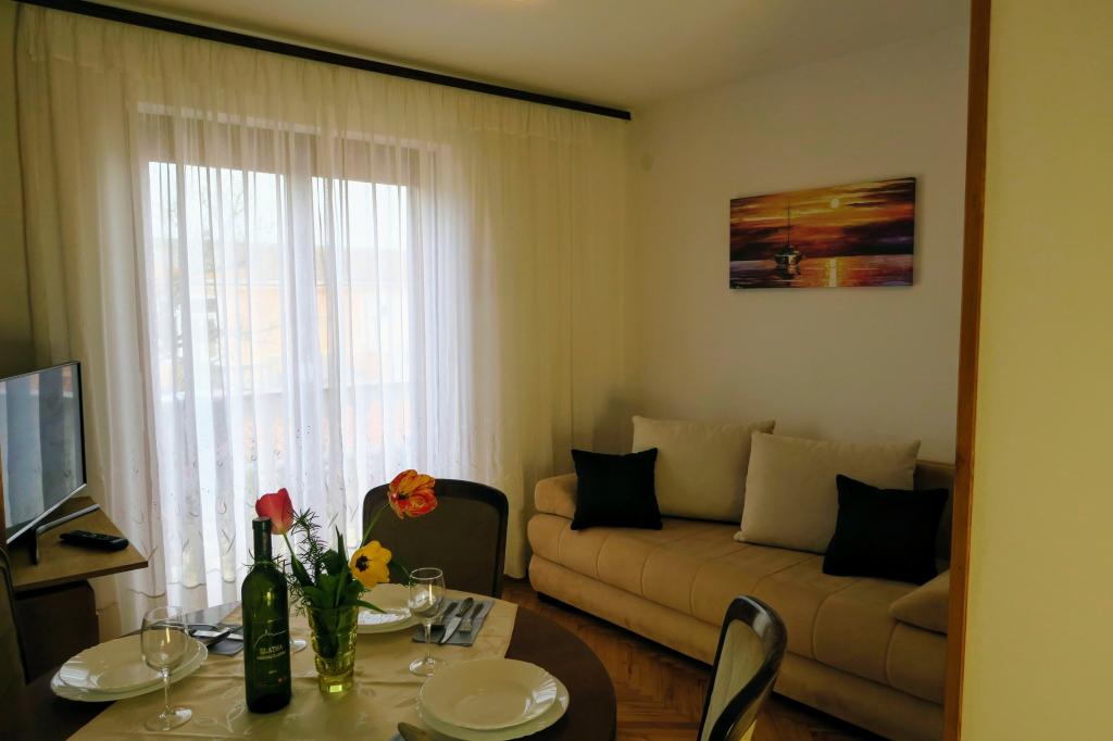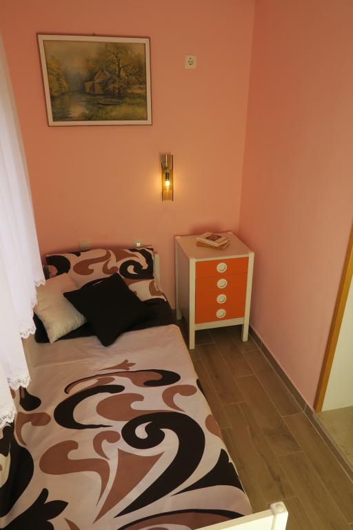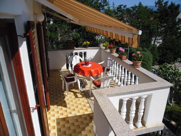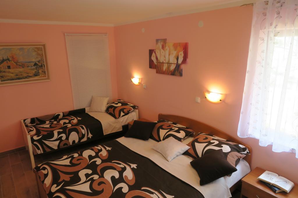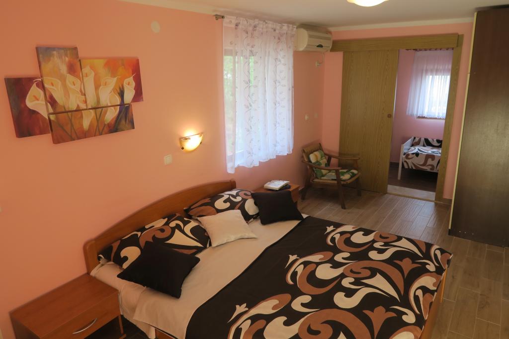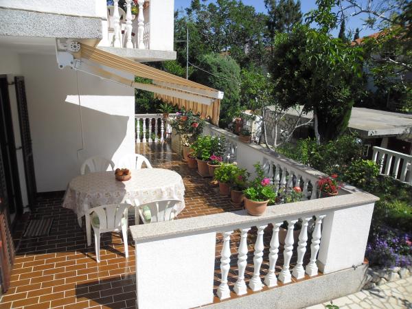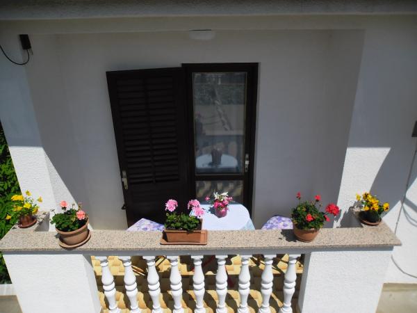 Hiša se nahaja približno 350m od morja, ima lepe balkone in terase, žar in veliko parkirišče. Hiša ima dva apartmaja za dve ali tri osebe z dodatnimi ležišči v obeh apartmajev. Hiša je v parku in od morja oddaljena približno 350m. Na dvorišču je žar na voljo. Apartmaji imajo televizijo in satelit, klima, internet, vse posteljnino in opremljeno kuhinjo in kopalnico. Vsi apartmaji imajo teraso in parkirno mesto.