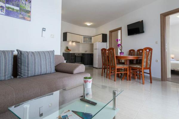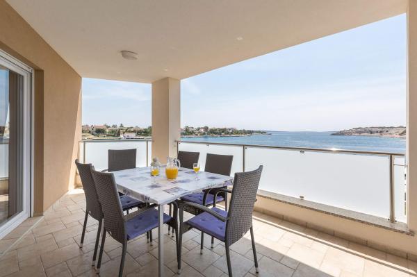 Novi in popolnoma opremljeni apartmaji se nahajajo v majhni ribiški vasici Šimuni, idealni za družinske počitnice. Vsak apartma ima svojo pokrito teraso s čudovitim pogledom na morje. Na dvorišču hiše je žar, vrtni tuš. Parkirišče za avto je zagotovljeno. V neposredni bližini apartmaja se nahajajo trgovina, ribarnica, restavracije in menjalnica.