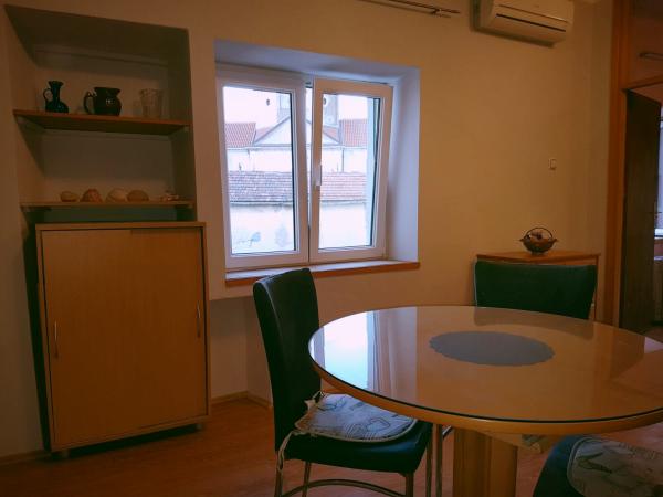 Opremljeno stanovanje v centru Skradina Objekt je sestavljen iz dvorane, kuhinja, dnevna soba, kopalnica in soba. To je 100 metrov od plaže, nedaleč od marine, kot tudi Narodni park Krka.