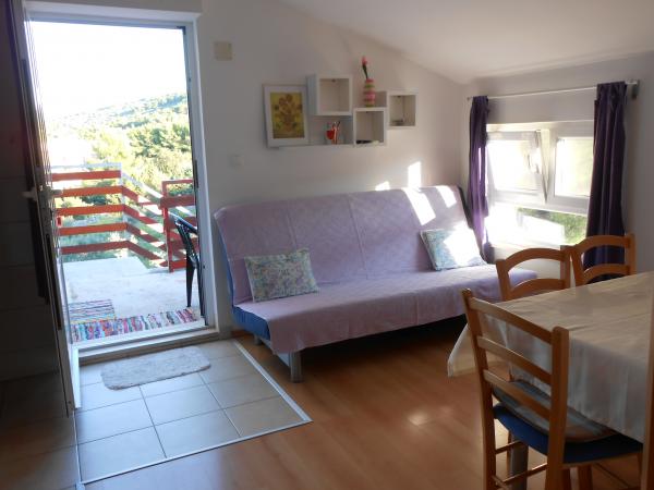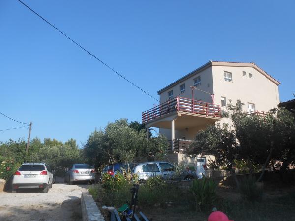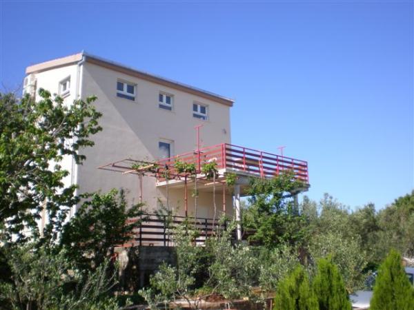 Hiša se nahaja v družinski hiši. V 3 apartmaji lahko sprejme skupno 16 oseb. Apartma A1 (6 2), 65 m2, za 8 oseb, 3 spalnice (dve z zakonsko posteljo), na kavču v dnevni sobi za 2 osebi, opremljena kuhinja, kopalnica s kadjo in WC-jem, ločen WC, velik orgadena 40 m2 terase s pogledom na morje. To je v celoti opremljen in klimatiziran. Nahaja se v pritličju in s pogledom na morje. Primerno za dve družini z otroki. Apartma A2 (2 2) in 35 m2 za 4 osebe. Spalnica z zakonsko posteljo, dnevno sobo / kuhinjo z kotiček kavčem za dve osebi, kopalnica s tušem, teraso. Popolnoma opremljen in klimatiziran. Nahaja se v drugem nadstropju hiše, s pogledom na morje. Stanovanje A2 (2 2) b, 24 m2, za 4 osebe. . Spalnica z zakonsko posteljo, dnevna soba s kavčem, popolnoma opremljena kuhinja, kopalnica s tušem, teraso s čudovitim pogledom na morje in hribe, ki se nahaja v drugem nadstropju. .