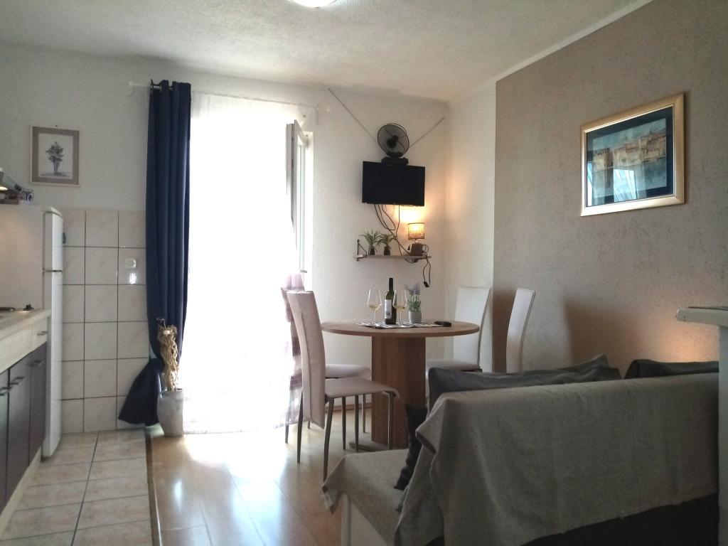 Lepo čisto stanovanje, opremljeno s pralnim in pomivalnim strojem, blizu plaže, restavracij in trgovin. Brisače na voljo. Gospa Željka zelo prijazna in ustrežljiva. Lep vrt s trampolinom, ki ga bodo še posebej cenile družine z otroki. V bližini je pristanišče, kjer se lahko vkrcate na ladjo Bura Line in se po zelo ugodni ceni odpravite v Split ali Trogir. Do Trogirja lahko uporabite tudi mestni avtobus.