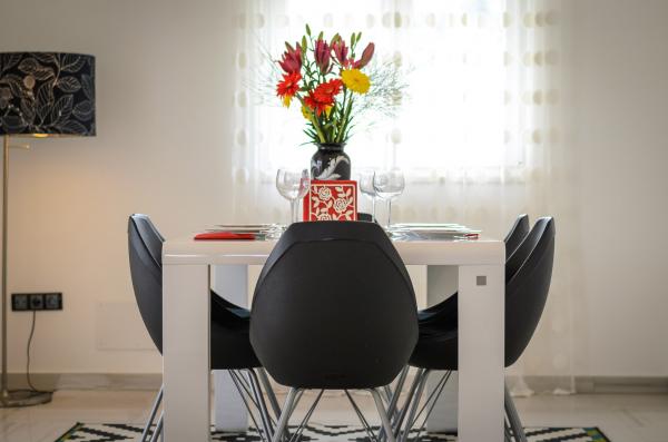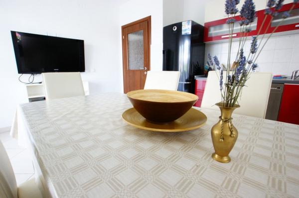 Lepo stanovanje, zelo čisto in dobro opremljena s sodobno opremo (hladilnik, pralni stroj, pomivalni stroj, TV, WiFi). Sobe so lepo opremljene in urejene.Kuhinja ima vse, kar potrebujete!Morje je dobesedno 100 metrov, vendar vam priporočam plažo, ki je približno 2 km od doma (smo plačali 10 £ parkiranje na avtu).Apartma ima veliko teraso, kjer so ležalniki in vrtno pohištvo, ki lahko sprejme do plaže.Hotel je lepo urejeno dvorišče s parkirnimi prostori. Gostitelji zelo dobrodošli! Zaradi svoje prijaznosti in odprtosti našega bivanja se spominjamo zelo dobro! Stanovanje priporočamo za družine z otroki ali mlajšimi aktivnih prijatelji-)