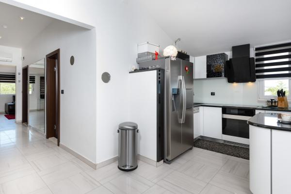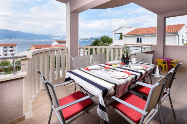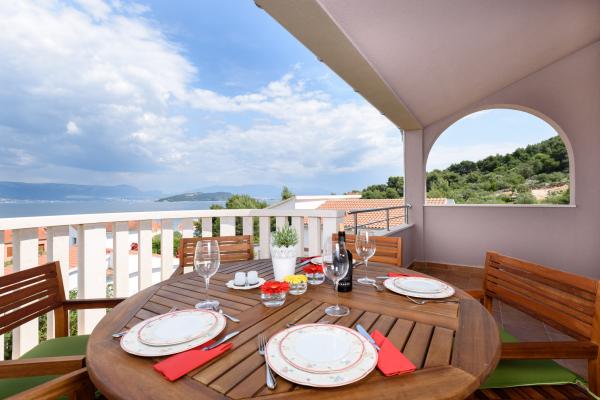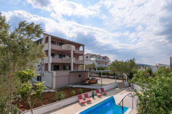 S kratko zgodbo se bomo srečali s Villa Maris; družinski dom kot nalašč za sproščen, izpolnjen družinski dopust. Nahaja se v Slatine; 9 km od mesta Trogir, 100 m od plaže 1, 8 km od najlepše plaže (nenaseljeno) na otoku, vam ponujamo 3 apps, velik bazen (9, 80x3, 50), vrt, parkirno mesto Vsaka app je opremljena z wi fi, terasa s pogledom na morje. Prva je v visokem pritličju, 3 spalnice, skupno 8 ležišč, terasa 35m2, kuhinja z vsemi kuhinjskimi potrebščinami, kopalnica. Drugi ap je v prvem nadstropju 3 sobe 8 mest skupaj, kuhinja z dnevno sobo, kopalnica in 25m2 terasa je tretja v drugem nadstropju. , primerna za 6 oseb, dnevna soba, kuhinja, kopalnica, terasa 20m2. Vse tri ap so popolnoma opremljene; pralni stroj (kuhinja / kopalnica), WiFi priključek, SAT TV, klima, mikrovalovna pečica, parkirno mesto.