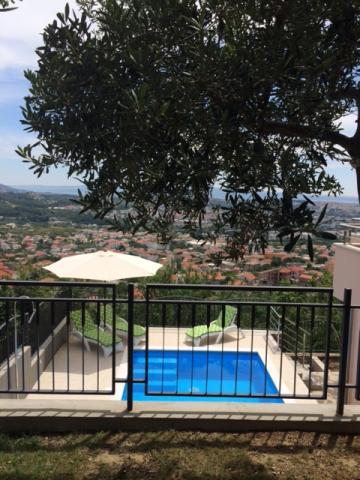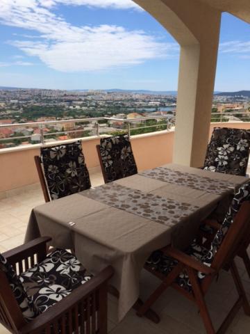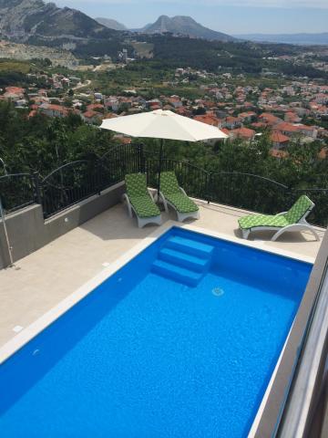 Moderno in novo opremljene počitniška hiša, v celoti opremljena, na pobočjih Kozjaka, gostje z vsega si lahko zaželite! S panoramskim pogledom na celoten Solin in Split, se sprostite in sončenje v prijetnem naravnem okolju velikem vrtu ali se osvežite v čudovitem bazenu. Center Solin je 5 minut vožnje, in tam boste našli vse, kar potrebujete, medtem ko je biser Dalmacije, Split, le 15 minut vožnje. Skoraj vse, vendar dovolj daleč, da imajo svoj mir in zasebnost. Dvonadstropna hiša je sestavljena iz velika dnevna soba, jedilnica, kuhinja, knjižnico in kopalnico v pritličju in pet spalnic, dve kopalnici, na prvem nadstropju. Vse sobe imajo balkon, kjer lahko spijete svojo prvo skodelico kave s pogledom.