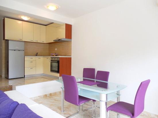 Ta odprt in zračen apartma limetta A1 ponuja čudovit dopust na obali. Ima veliko dnevno sobo z odprto kuhinjo. Obstajajo tudi sodobno jedilnico in velik kotiček kavč, ki lahko zagotovi udoben spalni prostor za dve osebi, pred novo televizijo z ravnim zaslonom. Pogled s terase pred dnevno sobo je na voljo neposredno na turkizno morje. Boste zagotovo uživali svoj zajtrk, kosilo ali večerjo. V spalnici z zakonsko posteljo, si boste lahko odpočili ponoči - pri odprtem oknu spat boste sledili nežen zvok valov. Kopalnica ima tuš kabino in WC, in imate za pranje v času vašega dopusta.