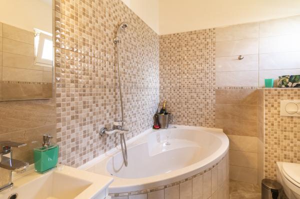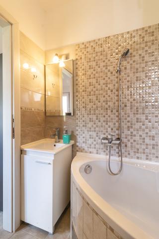 Apartma Gabrijela obsega 110 m3 v prvem nadstropju hiše na Brdih. Nahaja se ob avtobusni postaji, ki vas bo 5 do 10 minut pripeljala do središča mesta ali najbližje plaže. Apartma je kot nalašč za skupine ali družine z otroki. Sestavljen je iz velike dnevne sobe, ki je povezana s kuhinjo in jedilnico, 3 spalnice, 2 kopalnici in dva balkona. Prva soba z zakonsko posteljo ima kopalnico s prho v sobi, druga soba je poročena, v tretji sobi pa sta dve ločeni postelji. V dnevni sobi je tudi raztegljiv kavč za dve osebi. Vzhodni balkon z mizo in stoli je idealen za poletno zabavo z električnim žarom in zabavo poletnih noči. Kuhinja je v celoti opremljena z napravami in jedmi. V ceno so vključeni internet in smartTv s satelitom, uporaba pralnih in pomivalnih strojev. Pred apartmajem je trgovina in pekarna. Center Kaufland je oddaljen 5 min hoje, na voljo pa je tudi menjalnica. Mall of Split je 1 km stran.
