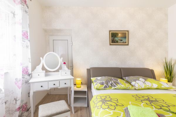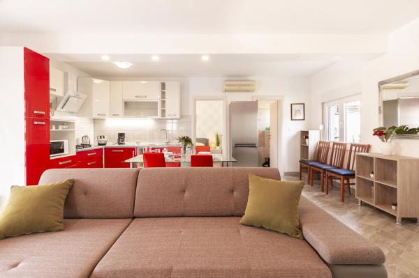 Turistična taksa je vključena v ceno.Cena vključuje vse posteljnino in odeje, velike in majhne brisače, šampon, gel za prhanje, milo za roke, toaletni papir, detergent za pomivalne stroje, posodo za pomivalne stroje, pralni prašek, uporabo posod in posod za kuhanje. V apartmaju imate tudi likalnik, sušilec za lase, aparat za kavo, toaster, mikrovalovno pečico in mešalnik ter aparat za lase. Mestni avtobus, ki ustavlja pred apartmajem, vas popelje na vse pomembne kraje za 5-10 min. Stanovanje je zelo prostorno in vam omogoča, da se počutite kot doma, ne da bi s seboj nosili nepotrebno prtljago. Idealno za počitnice in uživanje v druženju s prijatelji ali družinskimi prijatelji daleč od hrupa centra Splita. Dodatno udobje je brezplačno parkiranje pred apartmajem.