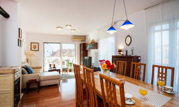 Ta dvonadstropna hiša se nahaja v mirnem okolju v bližini zgodovinskega središča Splita v Žrnovnici (poštna številka 21251). Hiša je sestavljena iz 3 spalnice in 2, 5 kopalnic. V prvem nadstropju sta 2 spalnici, 1, 5 kopalnic, kuhinja z jedilnico in dnevna soba, v 2. nadstropju pa 1 soba z balkonom in 1 kopalnica. Če se želite povezati z naravo, so v bližini številne znamenitosti. Okoli hiše je veliko zelenja, cvetja in rastlin, in naš okolju prijazen vrt s svežim sadjem in zelenjavo boste lahko uživali. Tu se lahko sprostite, odmaknete se od mestnega hrupa in le 15 minut vožnje do mesta. To je bila družinska hiša, preden je bila preurejena kot počitniški dom, tako da je bila okrašena z ljubeznijo. Hiša je prostorna in polna vsebin. Boste našli vse, kar potrebujete in več kot to in boste počutili kot doma. Na voljo je tudi velik balkon z jedilno mizo. Celotna hiša je samo vaša in ni drugih gostov, ki bi bili z vami. Lastnik hiše se nahaja v pritličju z ločenim vhodom.