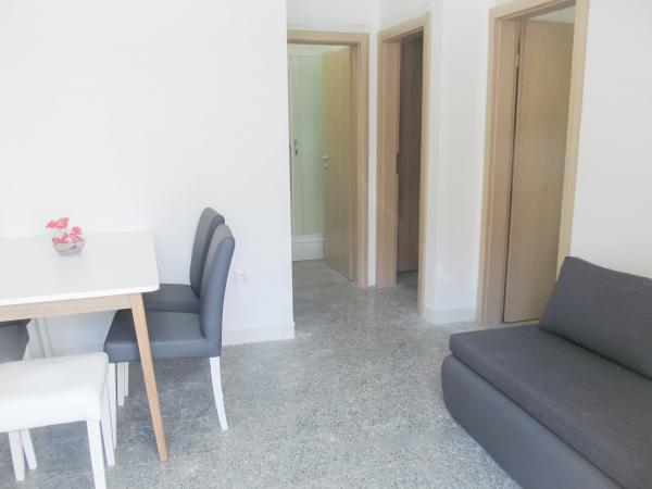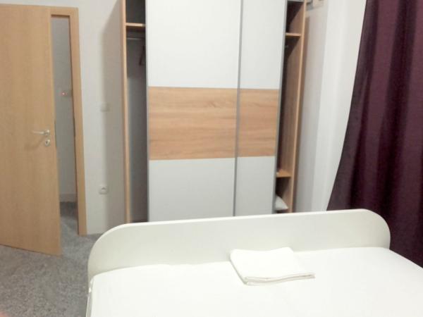 Popolnoma nova stanovanja v središču mesta z lastnim parkiriščem. Apartma je na veliki terasi. Če želite mirno bivanje v središču mesta, je to idealen počitniški kraj.