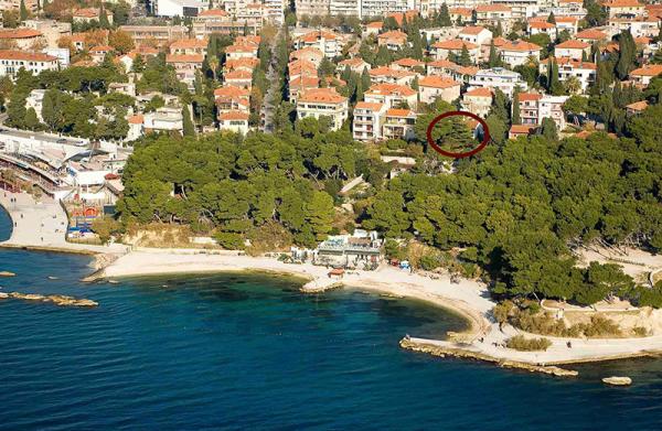 Apartma je sestavljen iz dve spalnici (velika in mala) kuhinja, kopalnica, hodnik, velika dnevna soba z izhodom na veliko teraso s pogledom na vrt in morje, v bližini znane plaže Bačvice, tudi tam so restavracije, kavarne, več plaža, sprehajalne poti, igrišča za otroke, teniška igrišča, kino na prostem (nasproti vrta), center mesta z Dioklecijanove palače. V neposredni bližini avtobusne in železniške postaje in trajektnega pristanišča. Tudi v 200m so nakupovalno središče, banke, bankomati, lekarne, bolnišnice.