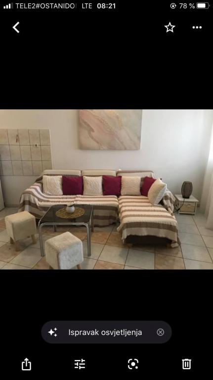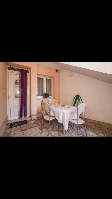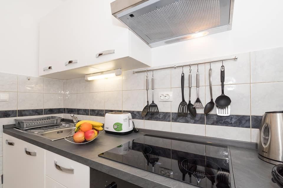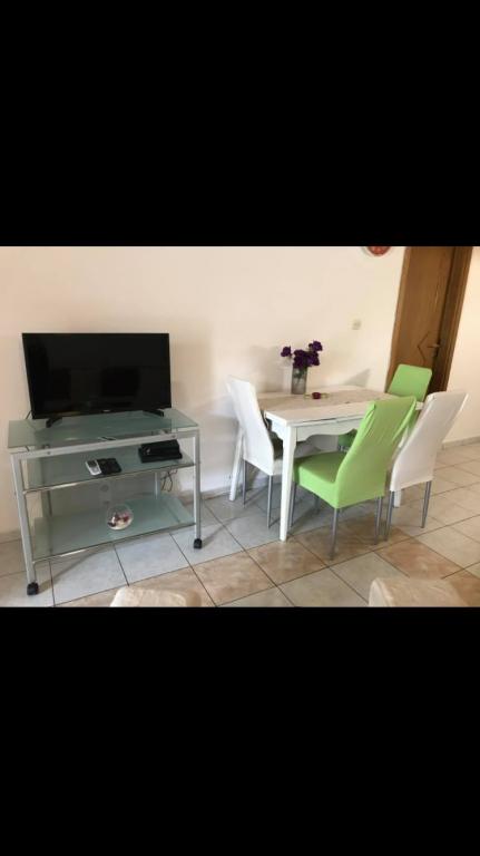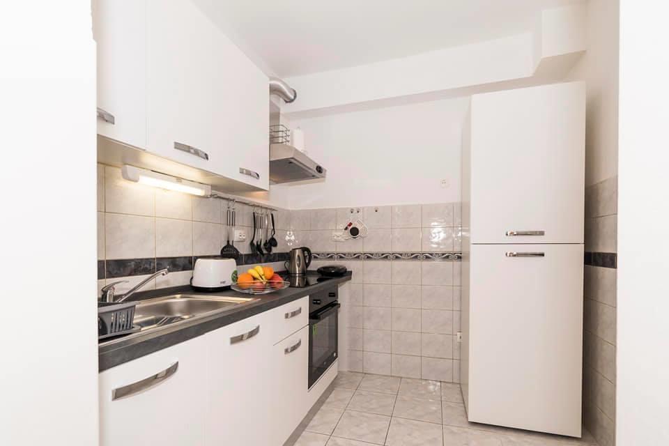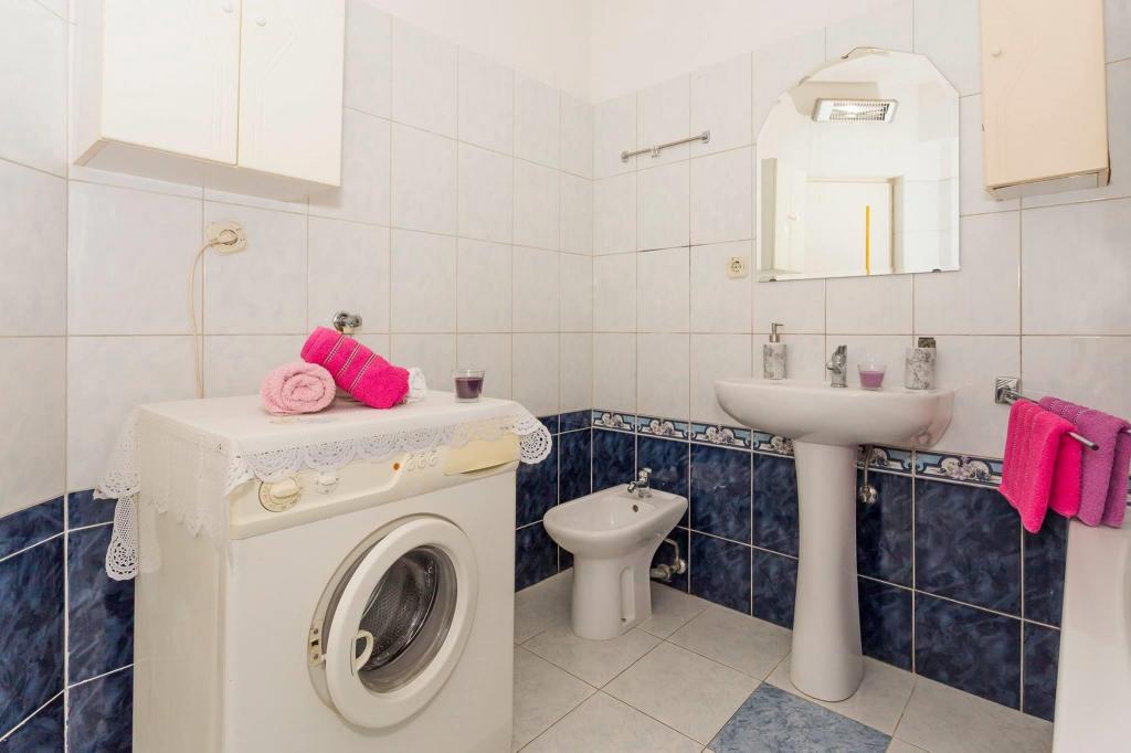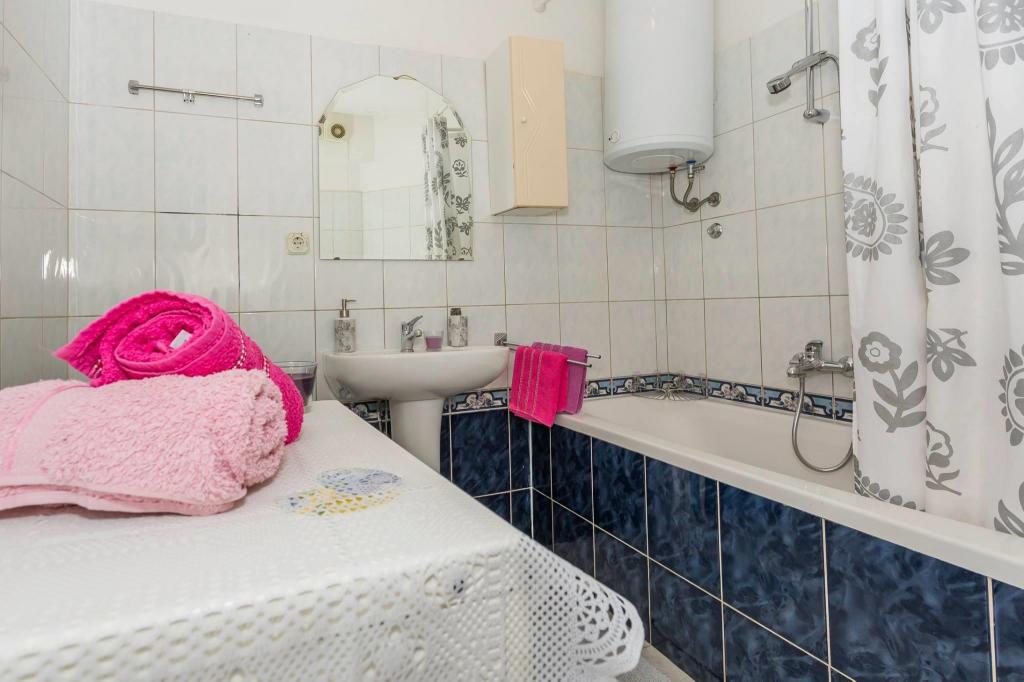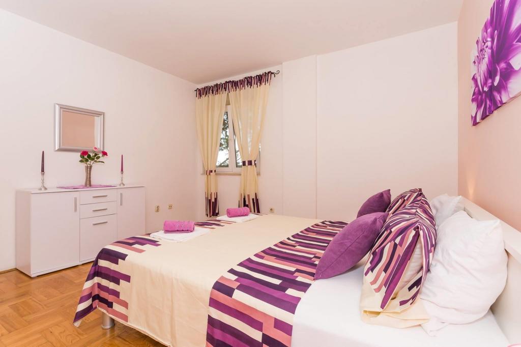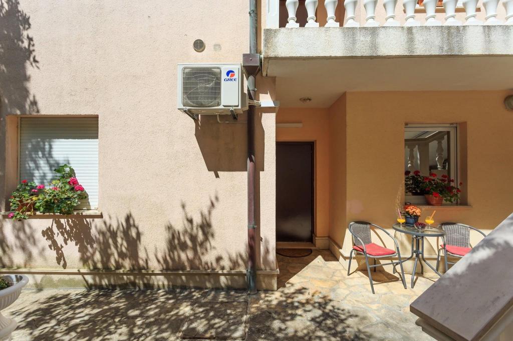 Stanovanje se nahaja v prvi vrsti do morja v novogradnji. Stanovanje vsebuje dve veliki spalnici z zakonsko posteljo, dve stranišči, kuhinjo, jedilnico, dnevno sobo in teraso. Apartma se nahaja 200m od prve prodnate plaže in 300m od peščene plaže. Oddaljenost do prve kavarne in restavracije je manj kot 100m, kavarna Renato, teniški bar in Mythos, restavracija Velo Misto in Barkarola. Oddaljenost do središča mesta je približno 20 minut peš. Na razdalji 100m so tenis igrišča za izposojo.