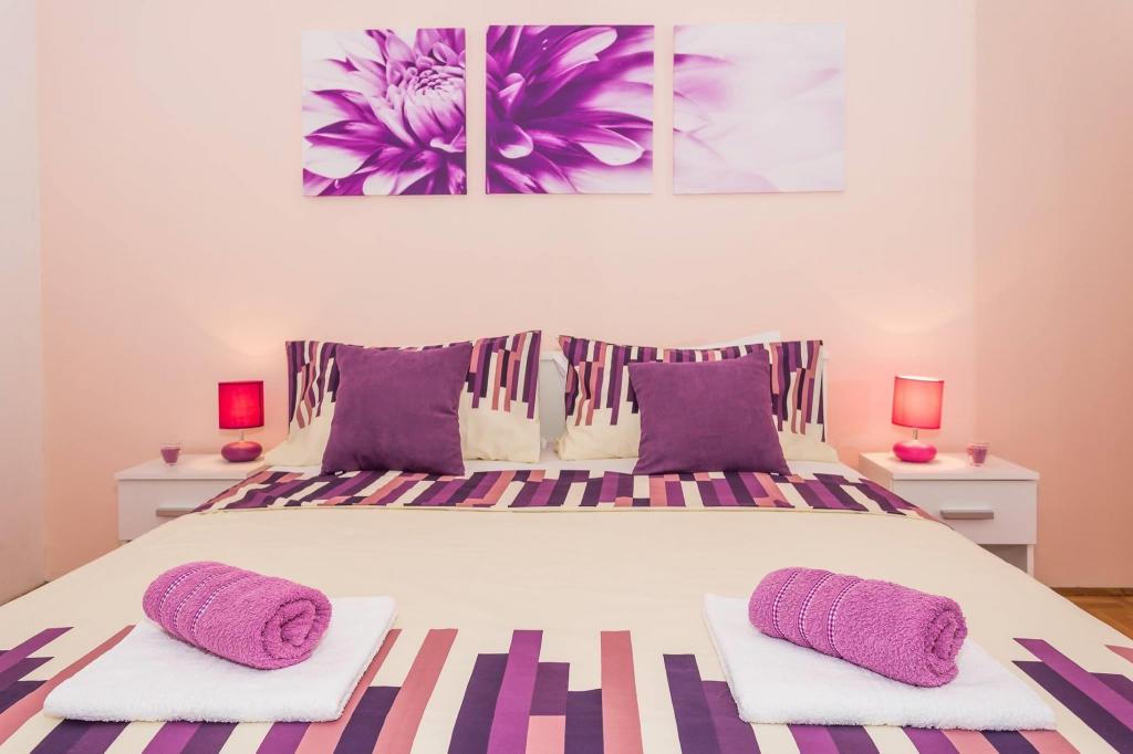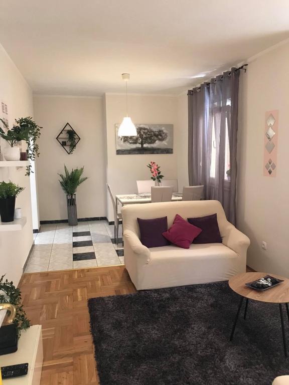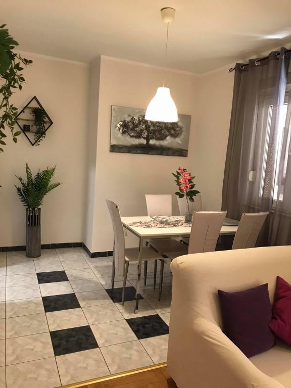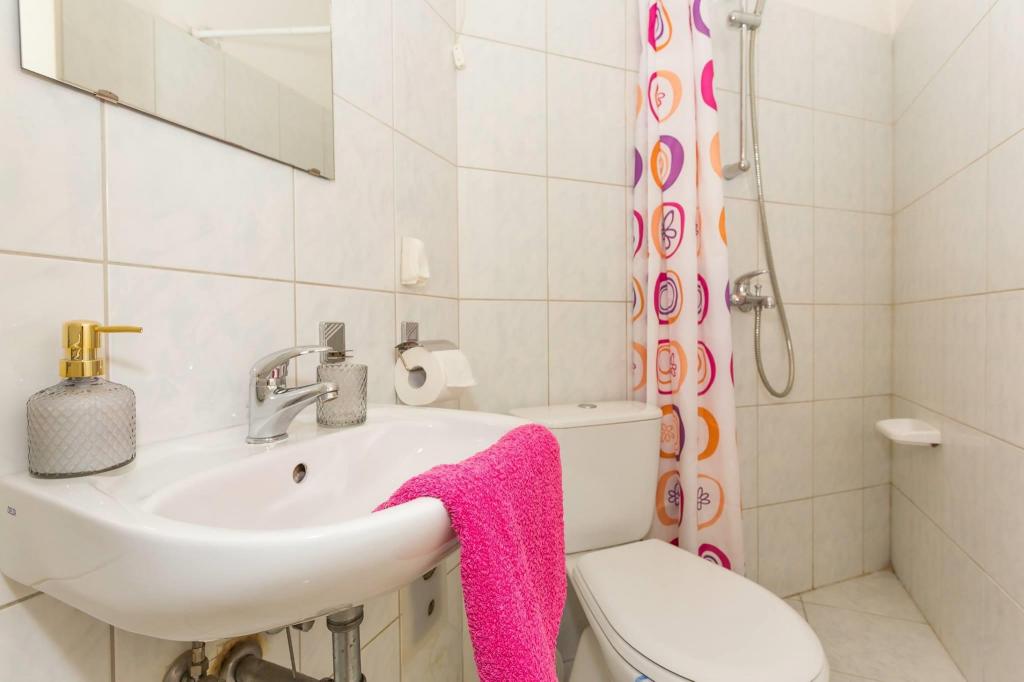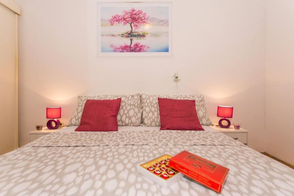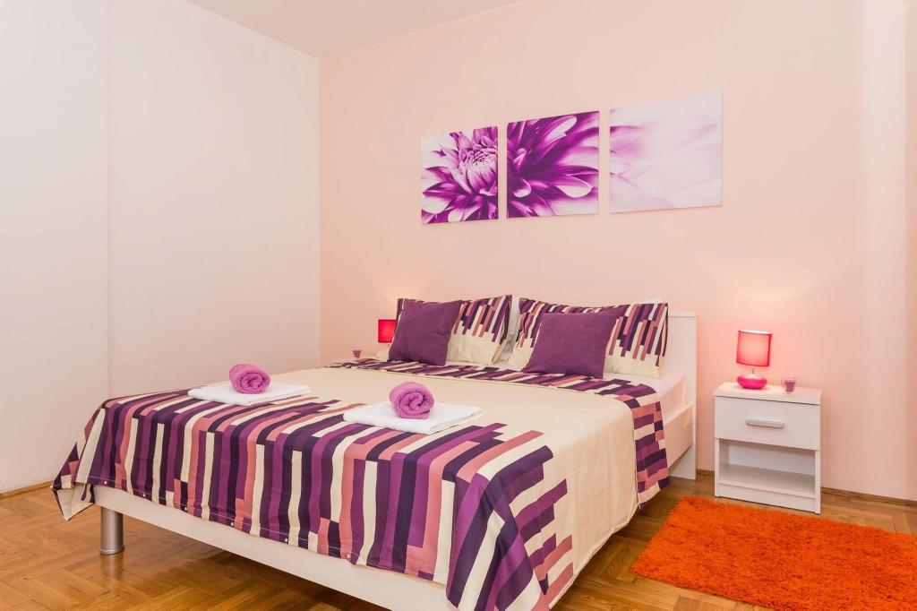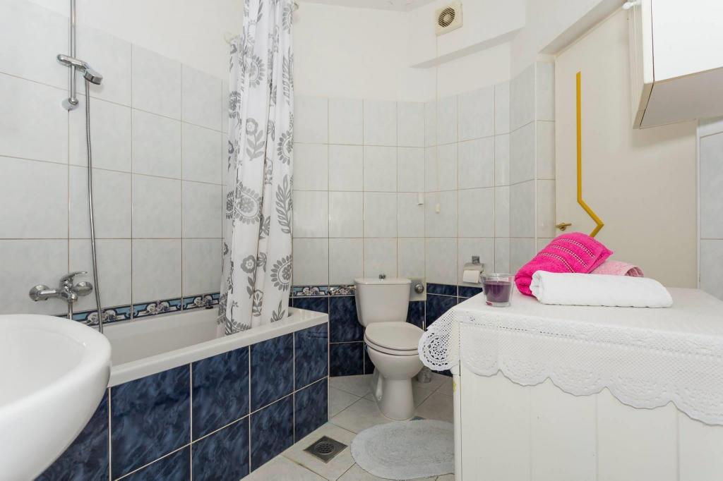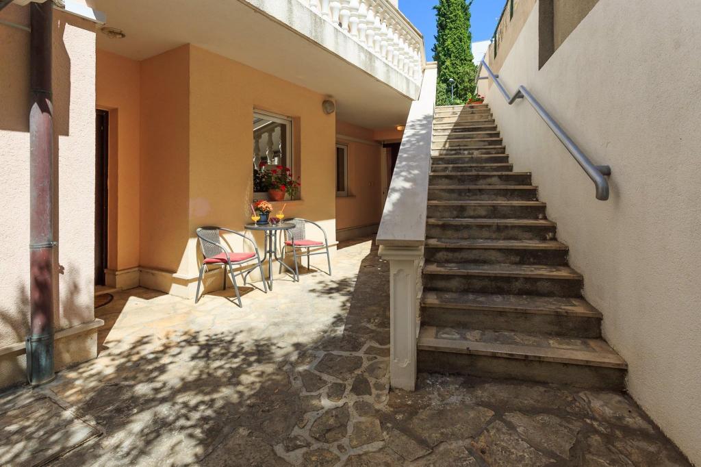 Stanovanje se nahaja v prvi vrsti do morja v novogradnji. Stanovanje vsebuje dve veliki spalnici z zakonsko posteljo, dve stranišči, kuhinjo, jedilnico, dnevno sobo in teraso. Apartma se nahaja 200m od prve prodnate plaže in 300m od peščene plaže. Oddaljenost do prve kavarne in restavracije je manj kot 100m, kavarna Renato, teniški bar in Mythos, restavracija Velo Misto in Barkarola. Oddaljenost do središča mesta je približno 20 minut peš. Na razdalji 100m so tenis igrišča za izposojo.