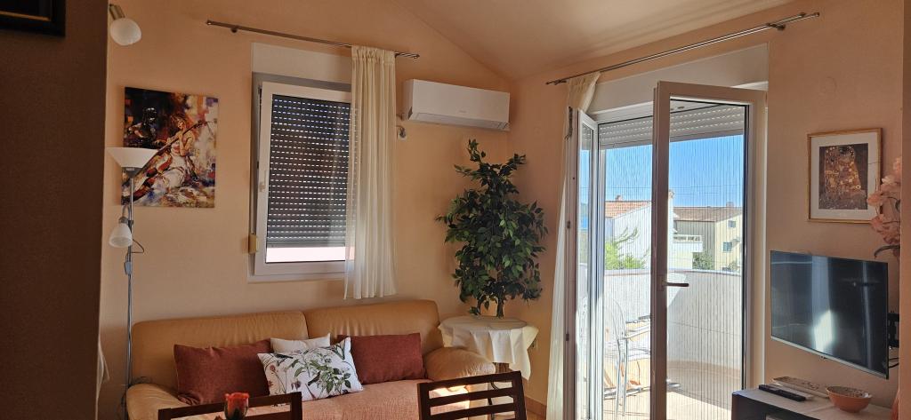 Novo in moderno stanovanje v mirnem kraju v Srimi pri Vodicah s pogledom na morje. Lepo urejena plaža je oddaljena cca. 100 metrov. Objekt se nahaja cca. 200 metrov od centra vasi in 25 minut peš (po promenadi) do mesta Vodice.