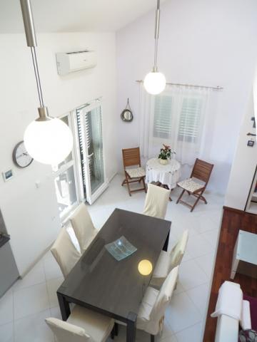 Stanovanje je bilo čisto in kot je vidno na slikah vnaprej. Klimatska naprava je vključena. Posebej omembe vredne so bile številne značilnosti apartmaja na krožnikih, kozarcih, jedilnem priboru, itd. Pomivalni stroj in pralni stroj omogočata bivanje. Pozdravljen je bil pivo, ki ga je pripravilo vino gostitelja, pripravljeno pa je bilo tudi žganje. Na voljo sta bila dva kolesa, 3,5 km dolga pot do promenade do Vodic je krajša. Ponudil sem mu celo skuter za uporabo. Bližnja plaža je bila kot nalašč za otroke, saj je po približno metru v vodi imela pesek. Lastnik je bil zelo prijazen. Njegova iskrenost in uslužnost sta zaokrožila njegovo pozornost. To je bil zelo lep dopust, ki bi ga radi ponovili v teh prostorih. , ,