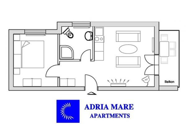 Apartma za dve osebi, možnost dveh dodatnih ležišč (40 m2)