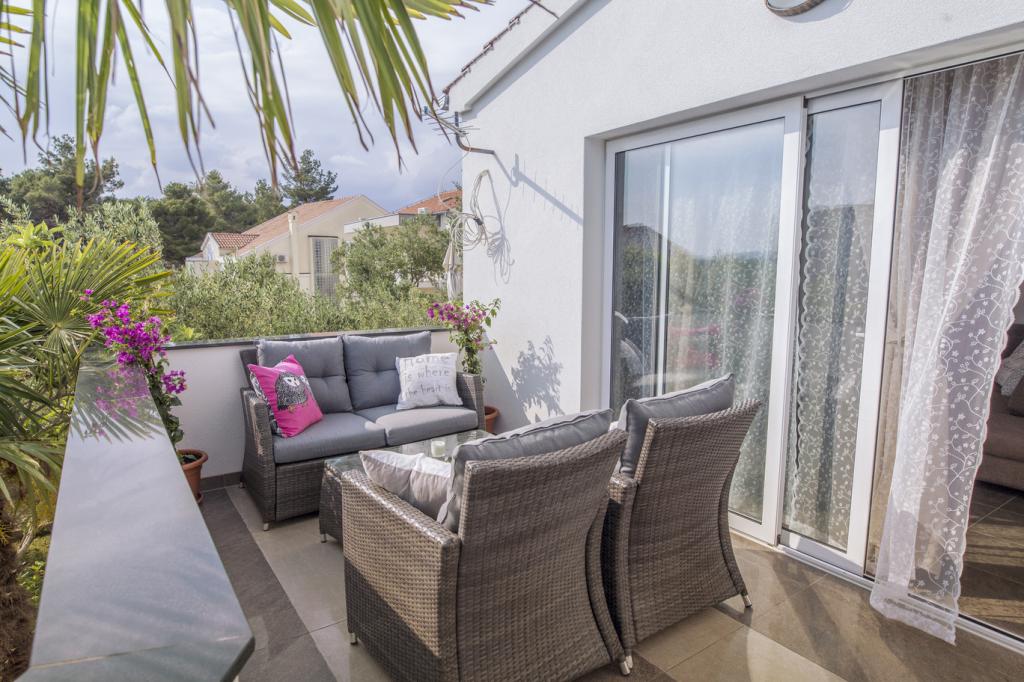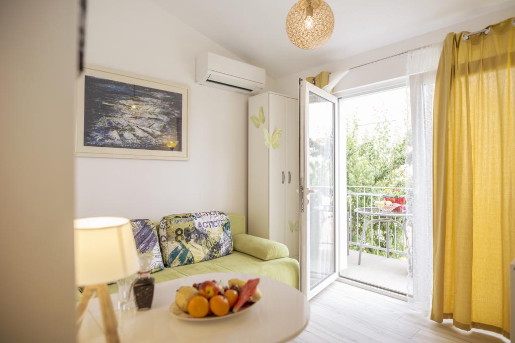 Popolnoma opremljeni apartmaji v mirnem delu Srime, 60 metrov od peščene plaže. V bližini je otroško igrišče, sprehajališče, restavracija, trgovina. Apartmaji so popolnoma opremljeni. Pred apartmajem je terasa z brezplačnim parkiranjem. Idealen kraj za družinske počitnice z otroki, Poleg hiše s 4 apartmaji imamo tudi počitniški dom za štiri osebe. Nahajajo se eden za drugim. Domače živali so dovoljene po predhodnem dogovoru Imamo možnost vstopa v otroško posteljico v spalnici.