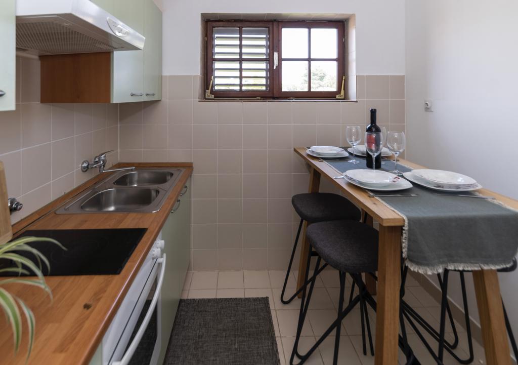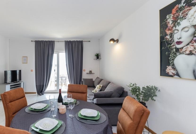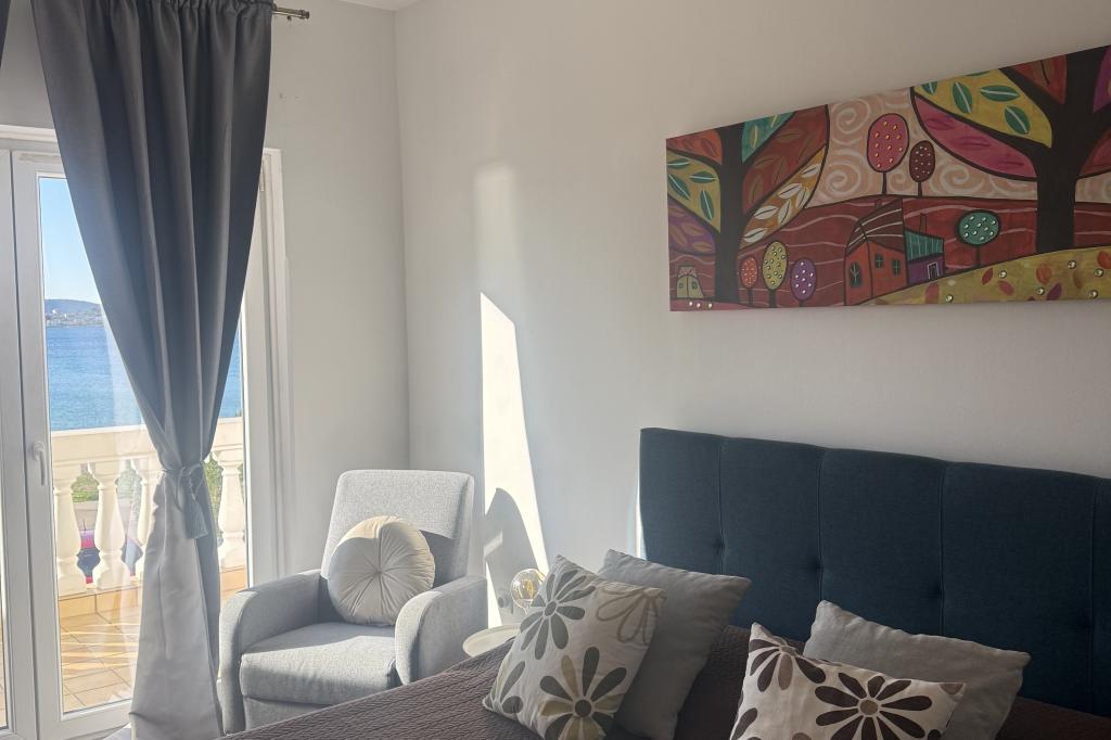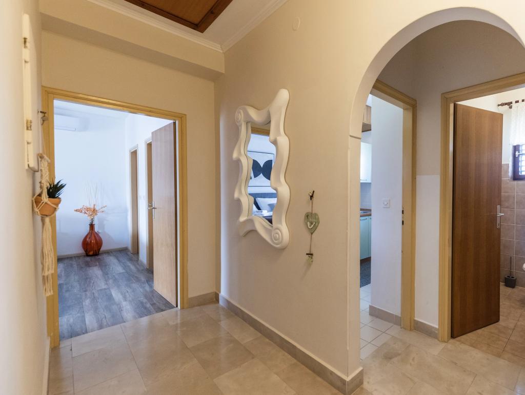 Neposredno ob morju, v Srimi, v prvem nadstropju družinske hiše, se oddajajo moderni apartmaji. Kvaliteten inventar, klimatizacija, oprema nasploh, bo zadovoljila goste, ki želijo več. Z združevanjem apartmajev lahko udobne dvo- in triposteljne sobe sprejmejo skupino turistov, medtem ko bodo gostitelji najeli le sobo z balkonom in pripadajočim straniščem. K občutku varnosti in sproščenosti bo prispeval tudi pozen pogled na morje.