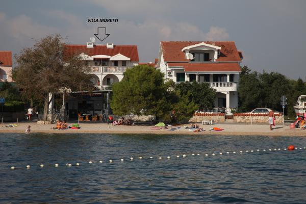 Vila Moretti je 100 m oddaljena od velike tržnice, 2 km od centra Vodic in avtobusne postaje z medkrajevnimi linijami. Letališče Zadar je oddaljeno 55 km, z doplačilom pa lahko organizirajo prevoz in izlete v bližnja nacionalna parka Krka in Kornati. Villa Moretti je 3 km oddaljena od priljubljenega disko-kluba "HACIENDA", ki ga vsako leto obišče veliko število mladih. Prednost Vile Moretti je, da je tik ob plaži, kar gostom omogoča udobje brez stroškov avtomobila in gneče do plaže!