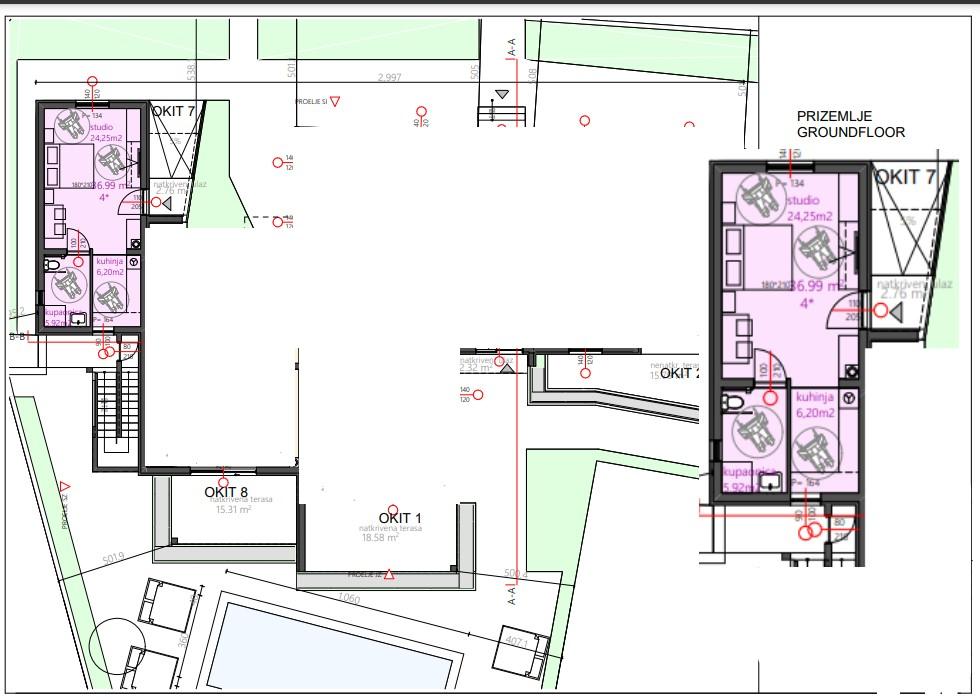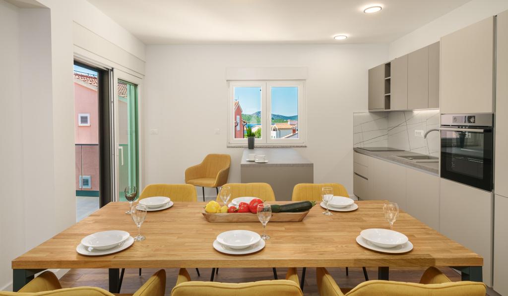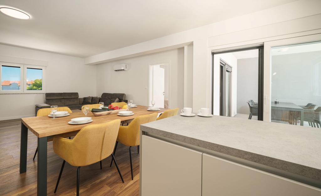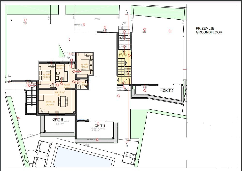 Apartvilla OKIT je novozgrajena hiša z zunanjim bazenom in ograjenim dvoriščem. Hiša se nahaja v Vodicah (Srima), le 150m od plaže. Sestavljeno je iz 10 ločenih stanovanjskih enot/apartmajev, ponujamo eno stanovanje z 1 spalnico, eno garsonjero, šest dvosobnih stanovanj in dva apartmaja s 3 spalnicami, ograjeno dvorišče s parkiriščem ter bazen in prostor za sončenje.