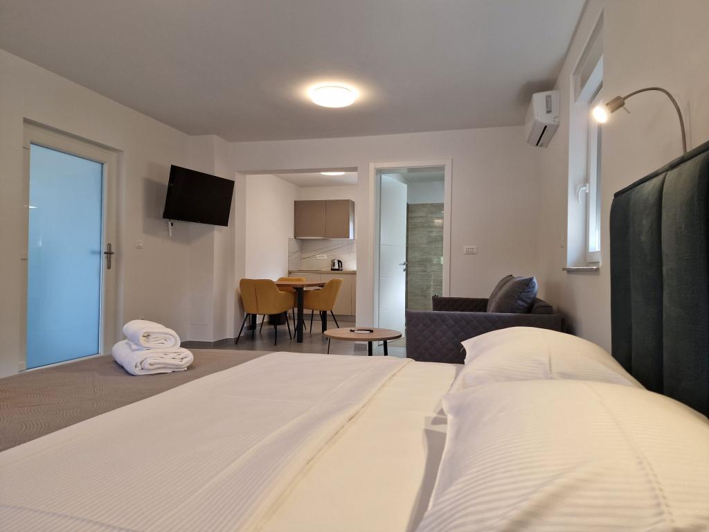 Cena vključuje turistično takso, parkirišče, klimo, posteljnino, uporabo bazena, končno čiščenje, internet.