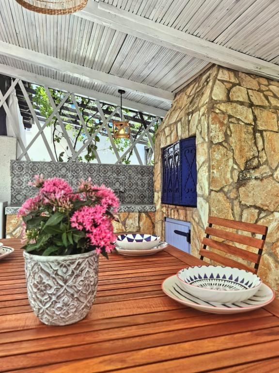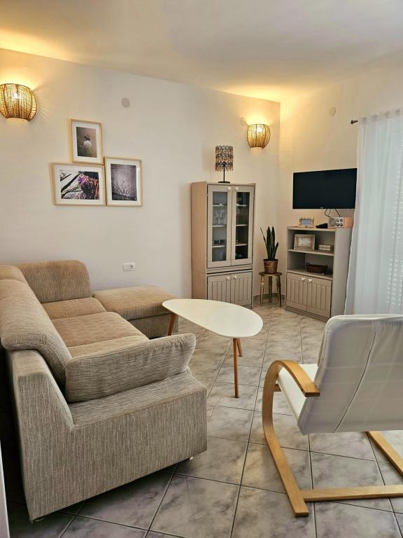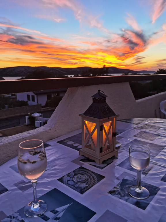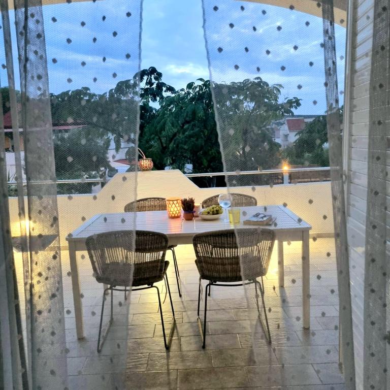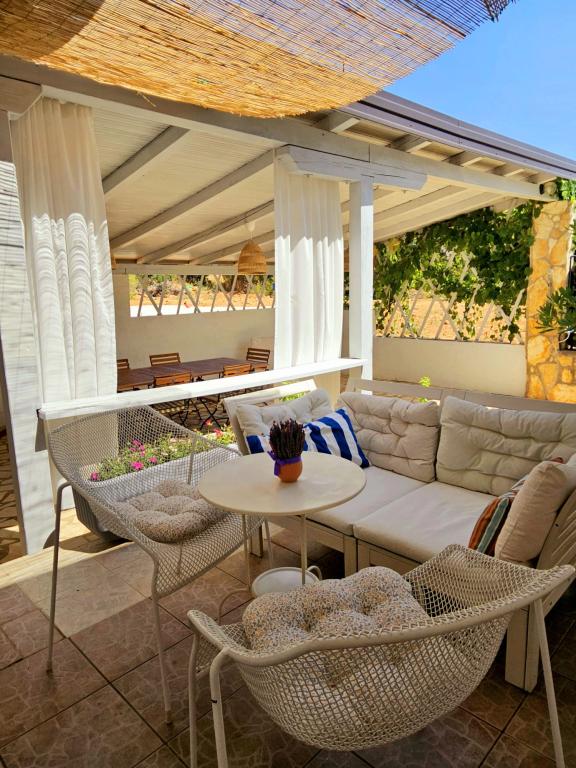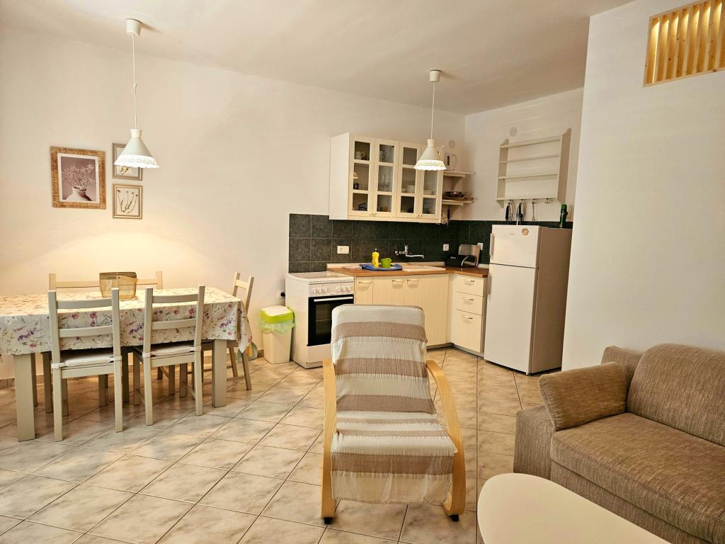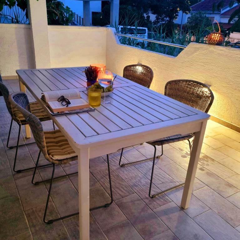 Privlačni in funkcionalni apartmaji v mirnem delu Stare Novalje, 5 min. hoditi do plaže! Vsak apartma ima dnevno sobo, dve spalnici, kuhinjo, jedilnico, kopalnico in veliko teraso s pogledom na morje. Obstaja tudi vrt s parkirnim prostorom pred lastnino, velika pokrita terasa z žarom in zunanji tuš na hrbtni strani stavbe.