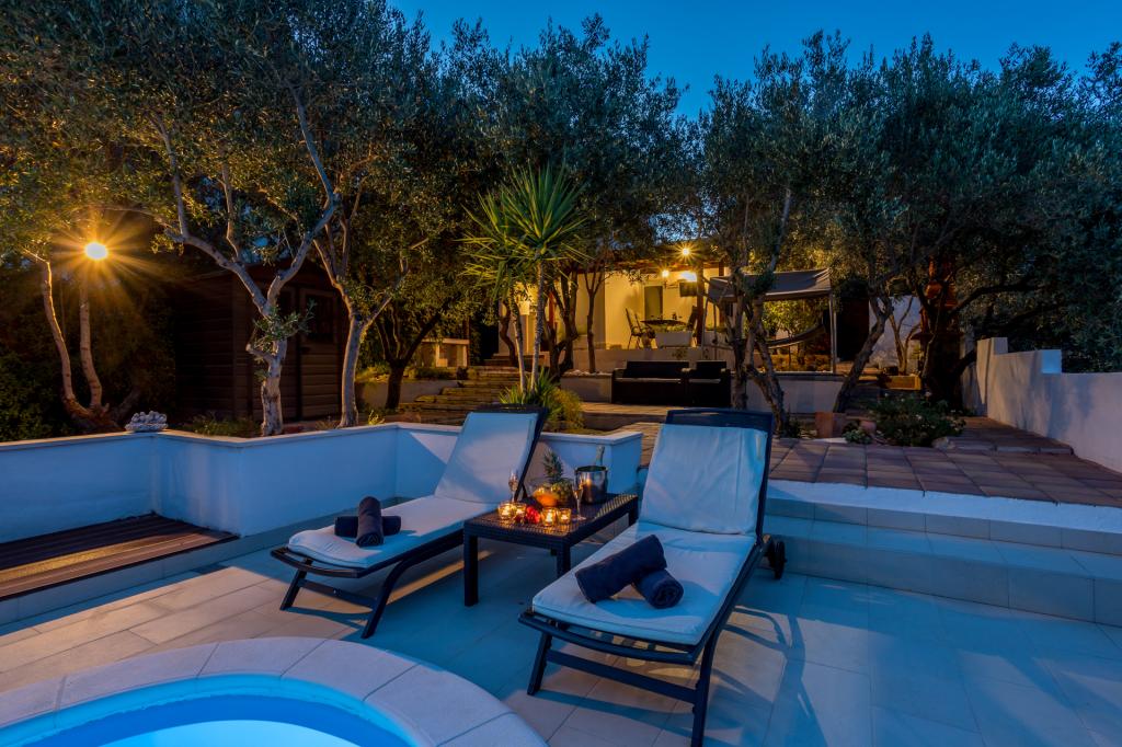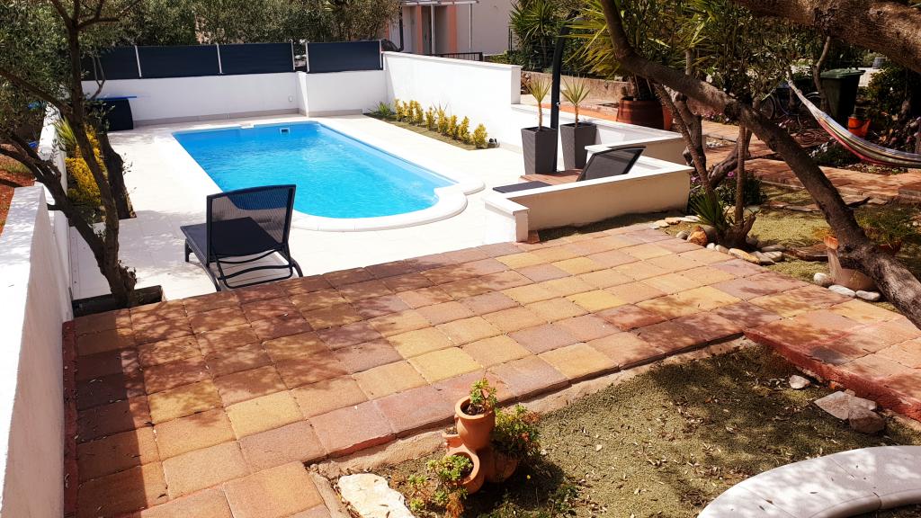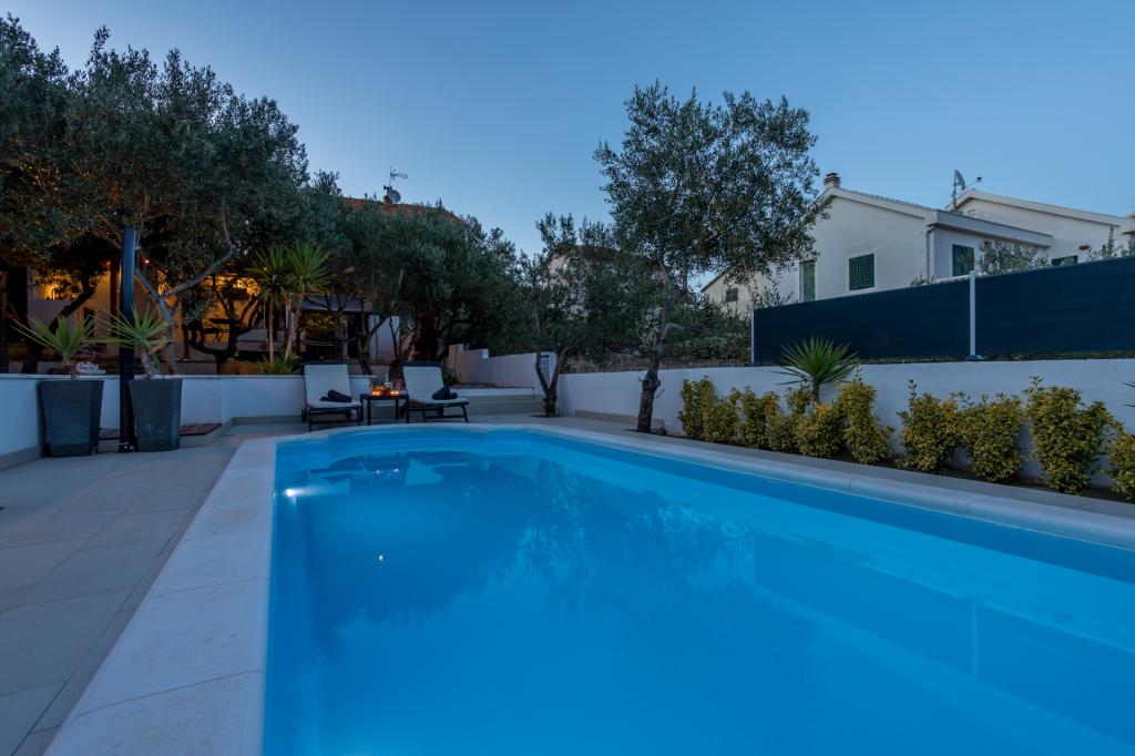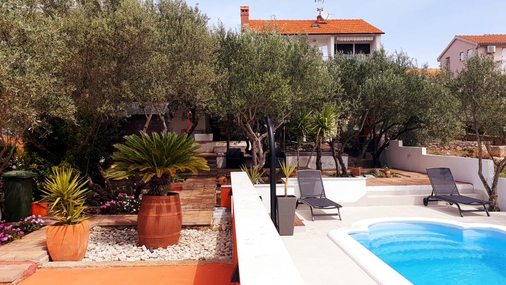 Mirna hiša se nahaja v stanovanjskem naselju starega mestnega jedra, le 100 metrov od plaže in 300 metrov od središča mesta. Ponujamo popolnoma opremljene apartmaje, Vrt je velik 1100m2, parkirišče, žar. V bližini se nahaja športni center (teniška igrišča, igrišča za odbojko, igrišča za golf, nogomet in košarko, hotelski bazeni, čudovite plaže in restavracije. Samostojna hiša Oliva 36 m2 se nahaja na parceli 500 m2 z zasebnim parkiriščem, zasebnim bazenom in ograjenim vrtom, obkrožena Sestavljen je iz ene spalnice z zakonsko posteljo, dnevne sobe z dodatnim ležiščem za dve osebi s kuhinjo in kopalnice s tušem. Stavba ima pokrito teraso površine 30m2 z vrtno garnituro, zunanjim žarom in tušem.Na vrtu je vrtno pohištvo in Objekt je klimatiziran, opremljen z LCD televizorjem, hi-fi, moderno kuhinjo / dvema plinskima obročema ter pečico in pomivalnim strojem. Možno je najeti apartma Tihana in hišo Oliva v skupnem objektu z bazenom za 10 oseb.
