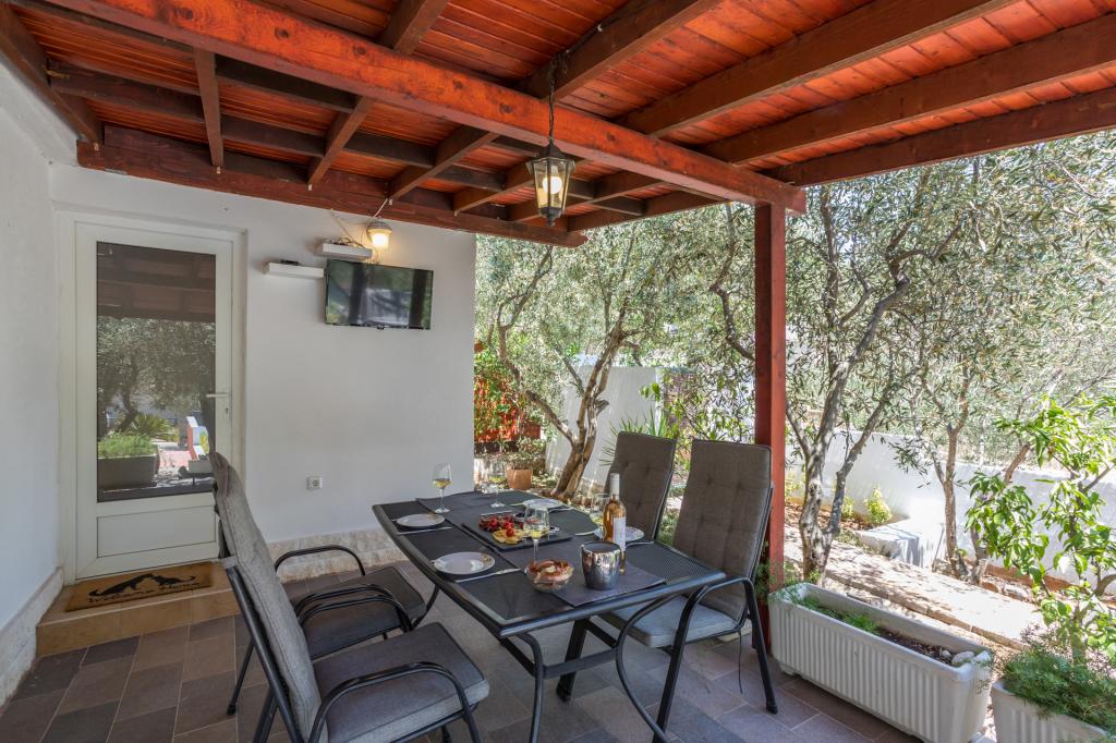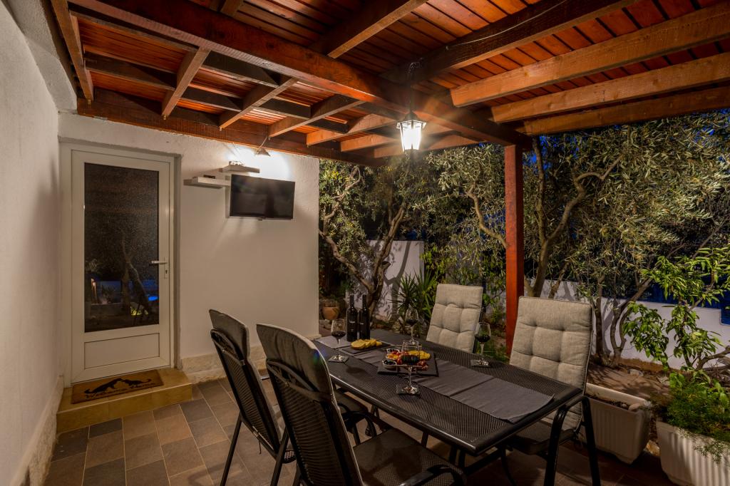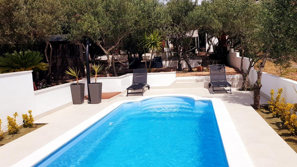 Turistična taksa je vključena v ceno.Apartma 80m2 se nahaja v prvem nadstropju družinske hiše. Sestavljen je iz 4 spalnic: treh prostornih spalnic, moderne kuhinje, dnevne sobe z dodatnim raztegljivim kavčem za dve osebi in moderne kopalnice s tušem. Vse sobe imajo balkon in klimatsko napravo. Na voljo so tudi aparat za kavo, velik hladilnik z zamrzovalnikom, električni štedilnik, električni in plinski, satelitska TV, DVD, Hi-Fi, Wi-Fi, kamin. Samostojna hiša Oliva 36 m2, ki se nahaja na parceli 500 m2 z zasebnim parkiriščem in ograjenim vrtom, zasebnim bazenom, obdan z oljkami in vrtom. Sestavljen je iz ene spalnice z zakonsko posteljo, dnevne sobe z dodatnim ležiščem za dve osebi s kuhinjo in kopalnice s tušem. Stavba ima 20m2 pokrito teraso. Ograjeno parkirišče.
