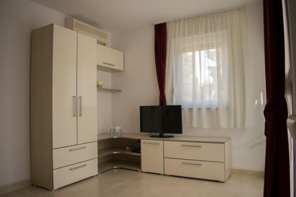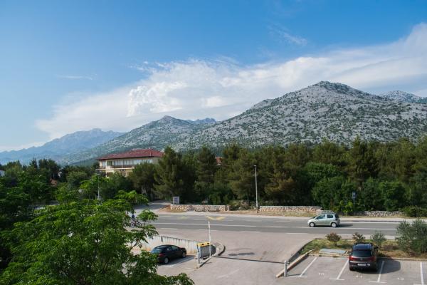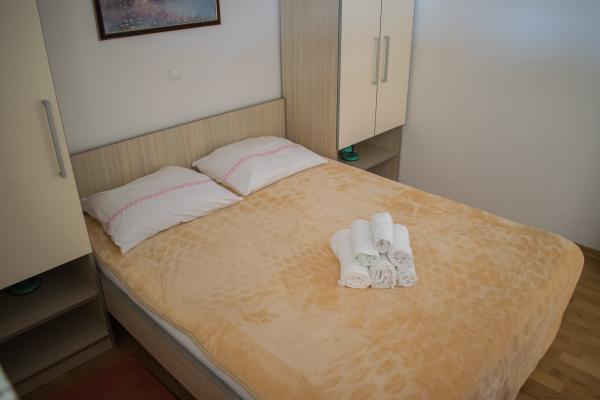 Moderno urejene enosobno stanovanje v novozgrajeni hiši v centru Stari Grad Paklenica v bližini vse dobrine. Vesolje razširja očarljivo pokrajino, kar ni mogoče številne države pohvali. Ponosni smo na edinstvene kombinacije Velebitu in prekrasnega Jadranskega morja, ki slovi po svoji čistosti, zato je plaža ima modro zastavo. Če je potrebno, nudimo dodatno ležišče v prostorno dnevno sobo, kjer je klima in sodobno televizijo s satelitsko televizijo, spalnica, kuhinja s pomivalnim strojem in drugimi napravami, kopalnica s tušem in pralnim strojem. V notranjosti prevladujejo beli in bež barvi z rdečimi podrobnostmi. Prostor je zračen in prijetno dostop dnevne svetlobe. S terase s pogledom na Velebit in Velika Paklenica (NP), ki je 10 minut hoje, plaža je 2 min hoje, kakor tudi lekarna. Trgovina se nahaja tik ob objektu, kot tudi bencinske črpalke. Se vidimo tam!