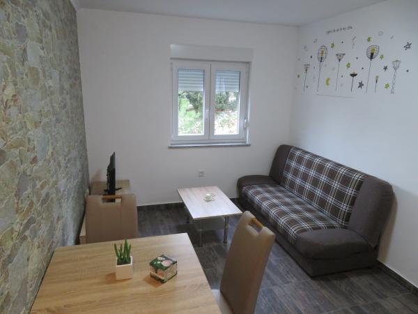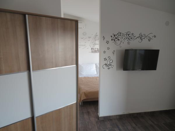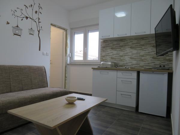 Nova stanovanja, v celoti opremljena in sodobno v območju plaže (30 m do morja), le 200 m od centra. Hiša z apartmaji, je celotna obnovljena leta 2018. Studio apartma je črno - bela z balkonom. Apartma 2 1 z balkonom in pogledom na morje v lepih belih in rjavih tonov. Apartma 4 1 je največji, ima dve sobe z velikimi posteljami. Ena soba je belo - zlate barve, in druga bela in bež odtenkov. Celotno stanovanje s kuhinjo in jedilnico ima zunanjo teraso z vrtno garnituro. V bližini so številne restavracije in trgovine. Starigrad Paklenica je idealna kombinacija morja in alpinizma zaradi nacionalnega parka Paklenica, ki se nahaja zelo blizu (1700 metrov). Zadar je prav tako blizu vsakem obisku, oglede, polet, lov lokalnega avtobusnega prometa, ki uživajo lokalne dobrote in podobno.
