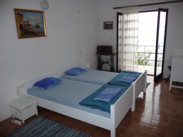 Charming prenovljeni dalmatinski hiši / stanovanju s 3 dvoposteljnimi sobami, veliko kuhinjo, kopalnico z wc-jem, dveh velikih teras, balkonov in le 5 metrov od morja. Lahko se uporablja dve ali tri sobe. Dve spalnici se nahaja v prvem nadstropju, eno v pritličju, pa tudi kuhinjo in kopalnico. Vse sobe imajo teraso ali balkon in pogled na morje. Kuhinja je velika, dobro opremljena z vsemi aparati in pripomočki. Hiša je primerna za eno ali dve družine ali skupine prijateljev. Neposredno pred hišo je majhen Peščena plaža, idealna za majhne otroke, in v bližini so stijenovite in betonska plaža. Ob hiši je veliko parkirišče. V okolici je veliko plaž, in tudi tam so možne z ladjo na otoku Pag, Zadar, Starigrad Paklenica Paklenica in Plitviška jezera.