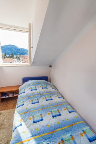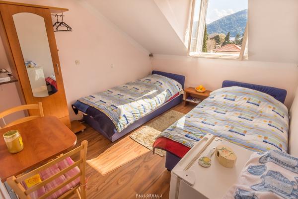 Naša hiša se natančneje nahaja v starem mestu Ston, v centru, pod mestnega obzidja. Apartma se nahaja nad glavnim vhodom v hiši, z lastnim vhodom. Pred hišo je terasa za goste, ter vrt z lokalnimi zelenjave, ki so brezplačni, da služijo našim gostom. Pogled od apartmajev je usmerjen na morje in staro mestno jedro. V bližini objektov: • ATM • Bank • Mail • Zdravnik • Lekarna • Avtobus • Ferry • Port Papratno • Bencinska črpalka • Pizzeria • Restavracija • Supermarket • otroško igrišče • Beach • mestno jedro Apartma je sestavljen iz: • Soba z zakonsko posteljo + pomožno ležišče za 1 osebo • Kuhinja v celoti opremljena. • Desk • Fotelji • pokrita terasa • Kopalnica • Terasa • Air • SAT-TV • Internet