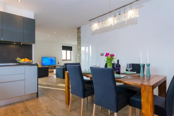 Sodobno urejen apartma na tleh družinske hiše se nahaja v samem središču mesta. Objekt se nahaja v mirni ulici, le 5 minut hoje do glavnega trga in je idealen za popoln družinski dopust. Celotno nadstropje stavbe obsega prostorno dnevno sobo, dve spalnici, kopalnico, popolnoma opremljeno kuhinjo, jedilnico in pokrito teraso. Našim gostom nudimo brezplačen brezžični internet, ogrevanje in hlajenje, satelitsko televizijo, sušilcem za lase, posteljnino, brisačami. Prihod s hišnim ljubljenčkom je možen po predhodnem dogovoru. Zasebno parkirišče na dvorišču hiše.