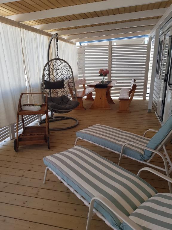 Odličen dopust....že drugo leto smo tu,in bomo se še vrnili...lastnica odlična,vedno je vam na razpolago če kaj potrebujete....mali družinski kamp ki vam nudi vse(zunanji tuš,žar,pralni stroj,internet wi-fi,hišni ljubljenčki dovoljeni,igrala za otroke) plaža,morje,fast food,gostilna 20 m stran od hiške....bližina mesta 500m stran (trgovine,gostilne,pekarne) Priporočam vam ta kamp,ne bo vam žal!!