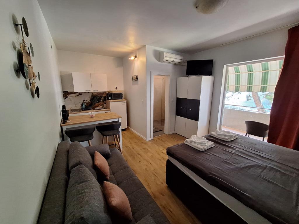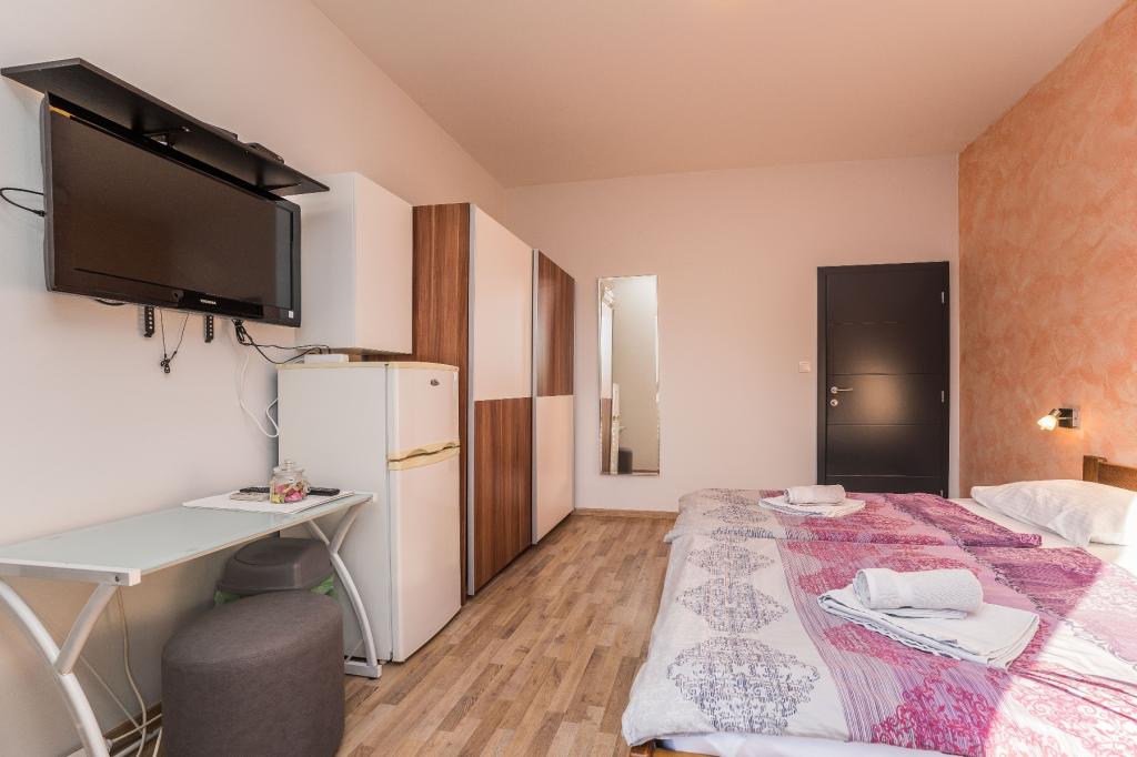 Preberite več Namestitvene enotePrijava v apartma je možna po 15.00 uri (v primeru dogovora lahko tudi prej), odjava pa je možna le do 10.00 ure. Akontacija znaša 30 % celotne cene rezervirane namestitve. Preostanek zneska se plača na recepciji, izključno z gotovino. Hišni ljubljenčki so dovoljeni, doplačilo pa znaša 7 € na noč na hišnega ljubljenčka.